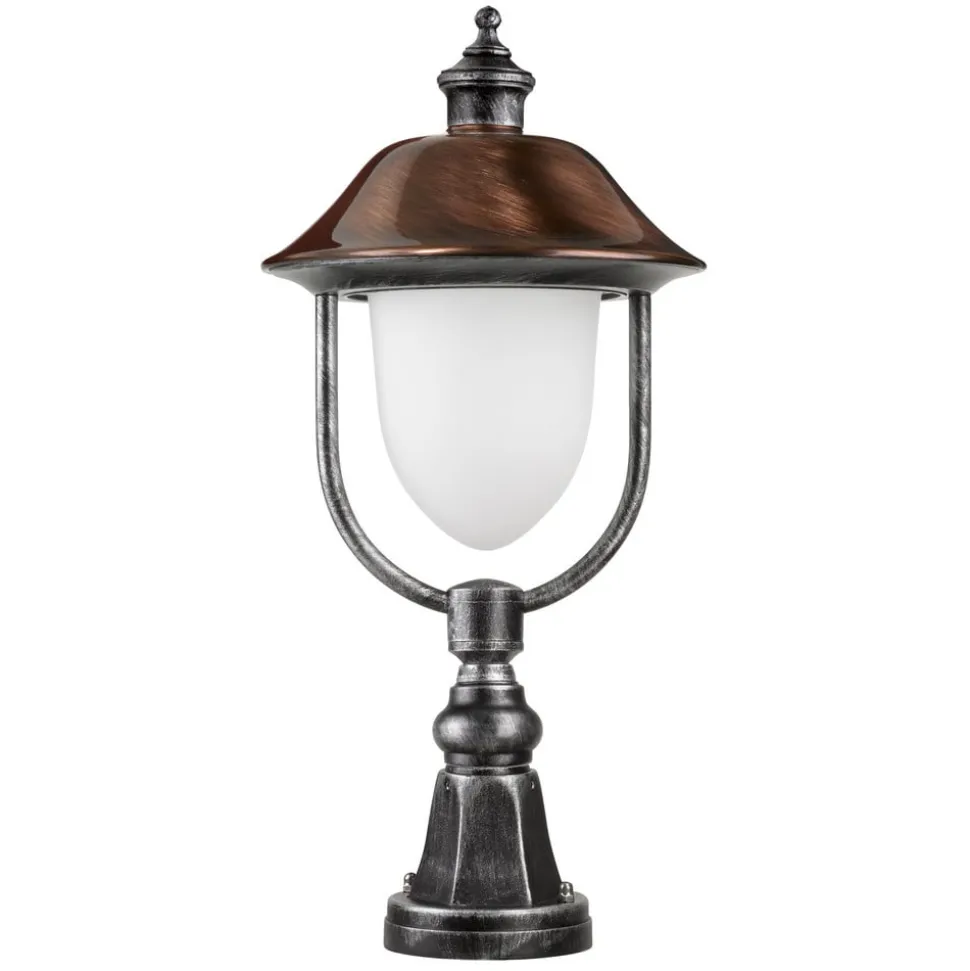 LED-sokkelarmaturet 1157LED er designet i lanterne-look og er fremstillet af støbt aluminium og kobber, hvilket understreger armaturets antikke udseende. Takket være de vejrbestandige materialer og IP43-beskyttelsesgraden er armaturet ideelt til udendørs brug. Takket være det opale glas sendes det varme lys blændfrit ud i alle retninger til omgivelserne. 1157LED er f.eks. perfekt egnet til belysning af indgangspartiet eller indkørslen.