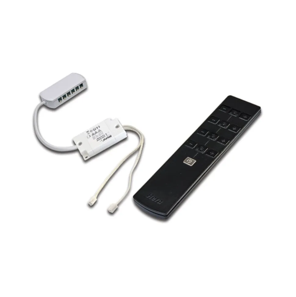 24V dæmpningscontroller radio 80 W med 12-vejsfordeler og 4-kanals radiofjernbetjening Indkoblingstransformatoren med radiofjernbetjening til dæmpning og omskiftning med en rækkevidde på op til 15 m er udstyret med en hukommelsesfunktion, så den tidligere dæmpningstilstand genoprettes, når strømmen afbrydes.