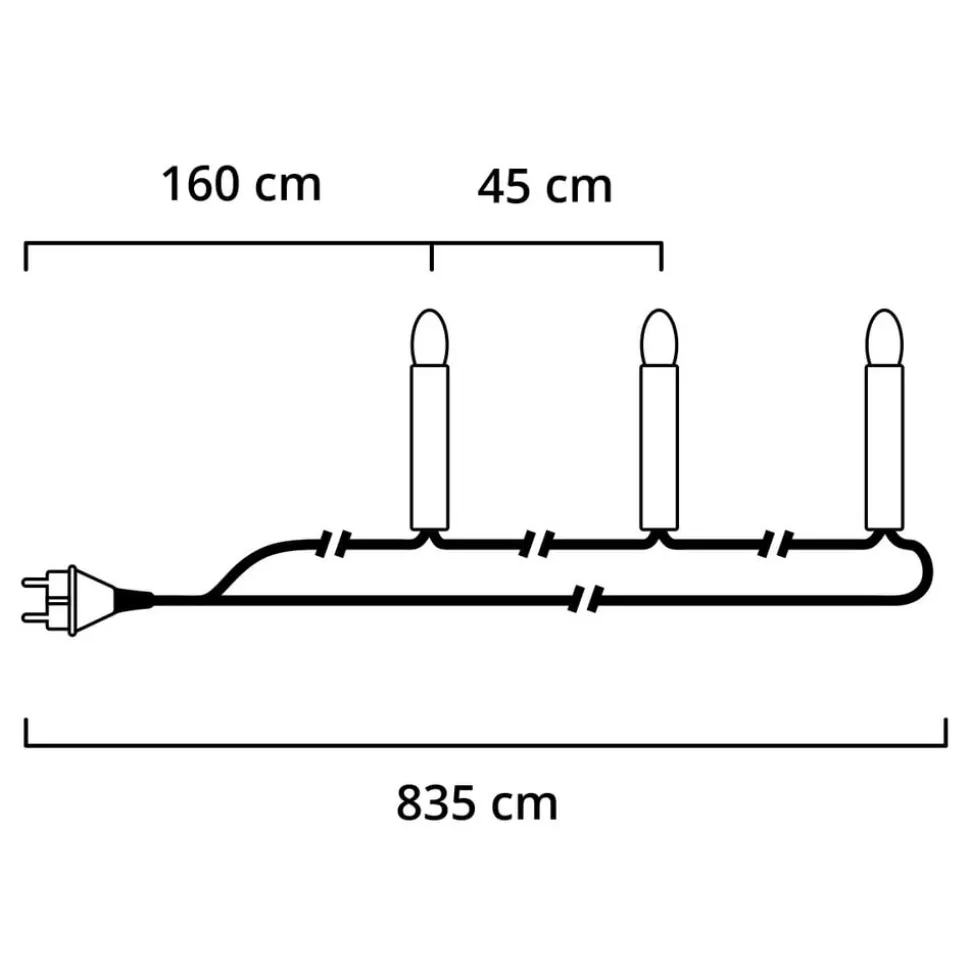 Ægte lys på juletræet er flotte, men desværre alt for farlige. Med denne lyskæde, der har 16 lyskæder, får du en sikker juletræsbelysning med toppærer, som med en samlet længde på 9,75 m sørger for et festligt lysskær. Ledningen er grøn og falder godt ind i det samelde billede.