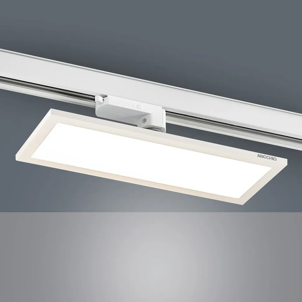 Hvid indrammet LED-panel Hairis til brug på en 3-faset skinne, drejelig