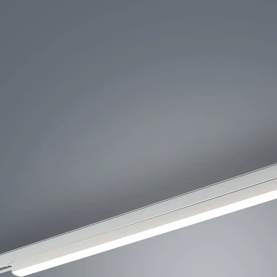 Harlow aflangt LED-armatur til 3-fase skinne med hvid overflade Harlow er designet til brug på et 3-fase skinnesystem og kan derfor bruges både privat og kommercielt. Det er et lineært LED-armatur, som har en god effektivitet, lyser kraftigt og giver mulighed for at belyse omgivelserne over et stort område. Afskærmningen over LED’erne er hvid, så lyset udsendes blødt og jævnt. Det gør Harlow til et armatur med mange anvendelsesmuligheder, hvor skinnesystemer generelt er kendetegnet ved, at de kan bruges til at skabe en individuel belysningsløsning ved at montere forskellige skinnespots med forskellige funktioner og fordele på en skinne. Visuelt er Harlow LED-skinnespot med sin hvide overflade en meget diskret lyskilde, der understreger sin opgave med at producere stærkt lys. – SDCM < 4 – UGR 29.9 – til drift på en 3-faset skinne