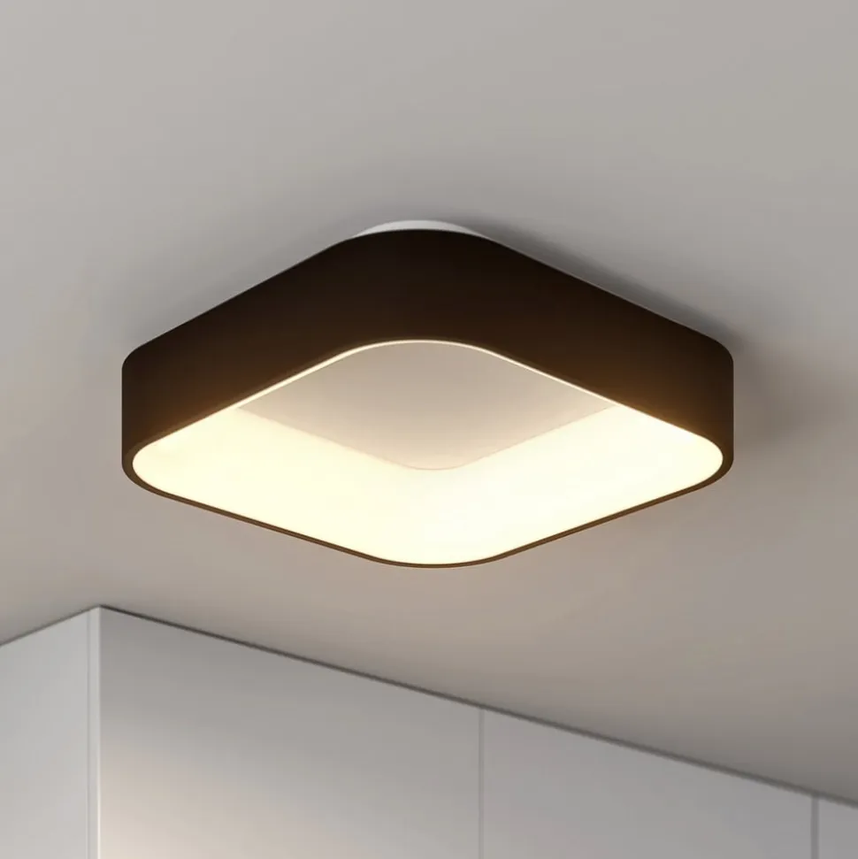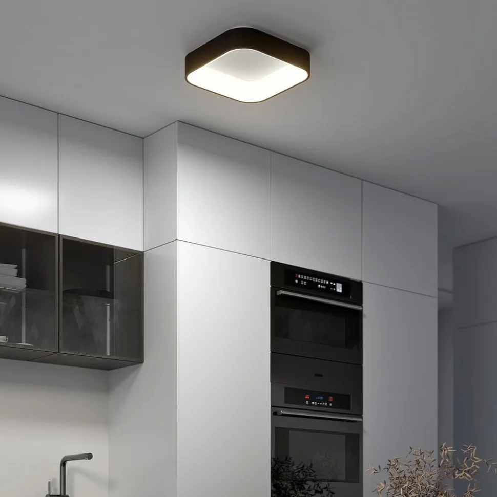 Moderne Aleksi LED-loftlampe i sort og hvid med afrundede hjørner Aleksi LED-loftlampen imponerer med sit elegante og firkantede udseende. Den er lavet af sort jern og har en hvid plastikdiffusor. Bag denne sidder de fast installerede LED’er, som kan styres med hensyn til lysfarve (3.000 K og 4.000 K). Lysfarverne kan ændres ved hjælp af en vippekontakt, der er placeret inde i armaturet. Det betyder, at LED-loftlampen Aleksi altid kan give det rigtige lys og den nødvendige stemning. Takket være det enkle design passer den godt ind i en stue eller et køkken og integreres ubesværet i en lang række forskellige indretningsstile. Det ret enkle farveskema smelter let sammen med resten af møblerne uden at overdøve dem.