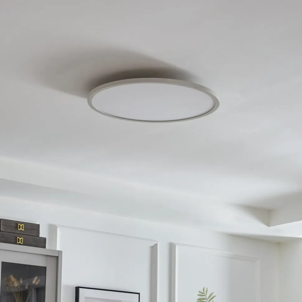 Dæmpbar, med fjernbetjening og et enkelt design: LED-loftlampen Brenda Denne loftlampe er visuelt tiltalende med sin diskrete charme i hvid og er også udstyret med praktisk ekstraudstyr. Brenda har en rund metalramme og ligger fladt mod loftet. Den leveres med en fjernbetjening og giver derfor mulighed for en hurtig ændring af farvetemperaturen. Fjernbetjeningen kan ikke kun bruges til at variere farven fra varmhvid til dagslys, men også til at dæmpe lysstyrken, som altid er blændfri. En natlystilstand gør det muligt at orientere sig i rummet selv på meget sene tidspunkter med diskret belysning. Tekniske detaljer – med skrueløs hurtigkoblingsterminal af høj kvalitet (holdbar, sikker og værktøjsfri fjedermekanisme) – CCT-farveskiftfunktion – med fjernbetjening – dæmpbare LED’er – natlystilstand