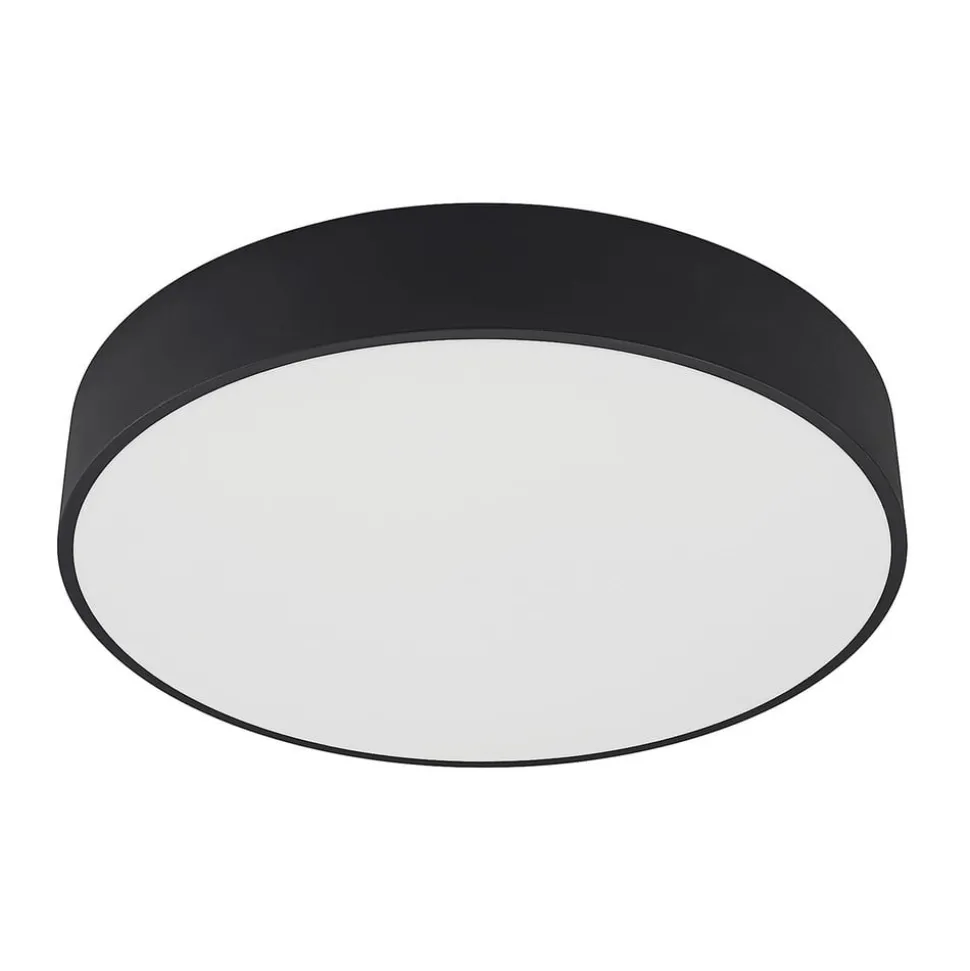 Sort LED-loftlampe Noabelle med metal surround og akryl diffusor, lysfarve justerbar på forhånd