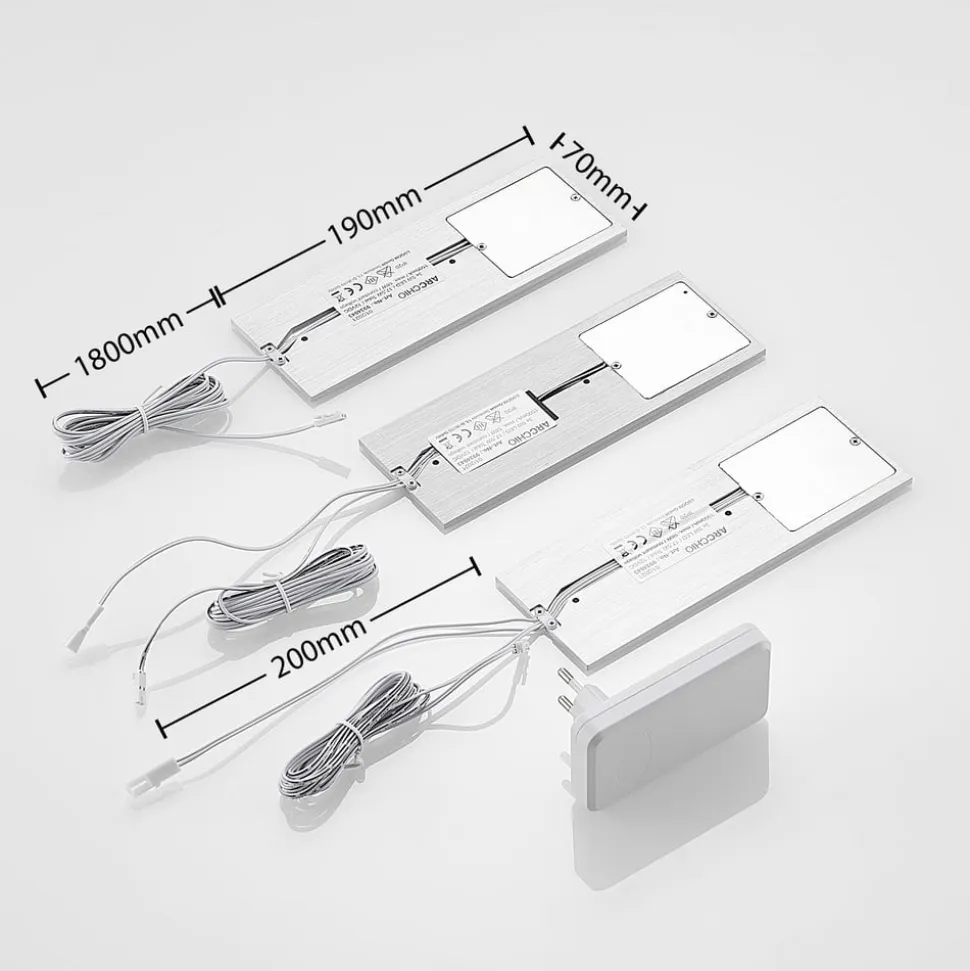 LED-aluminiumsunderbordslamper Nortra i praktisk sæt med tre, kantet form, dæmpbar via touchfunktion
