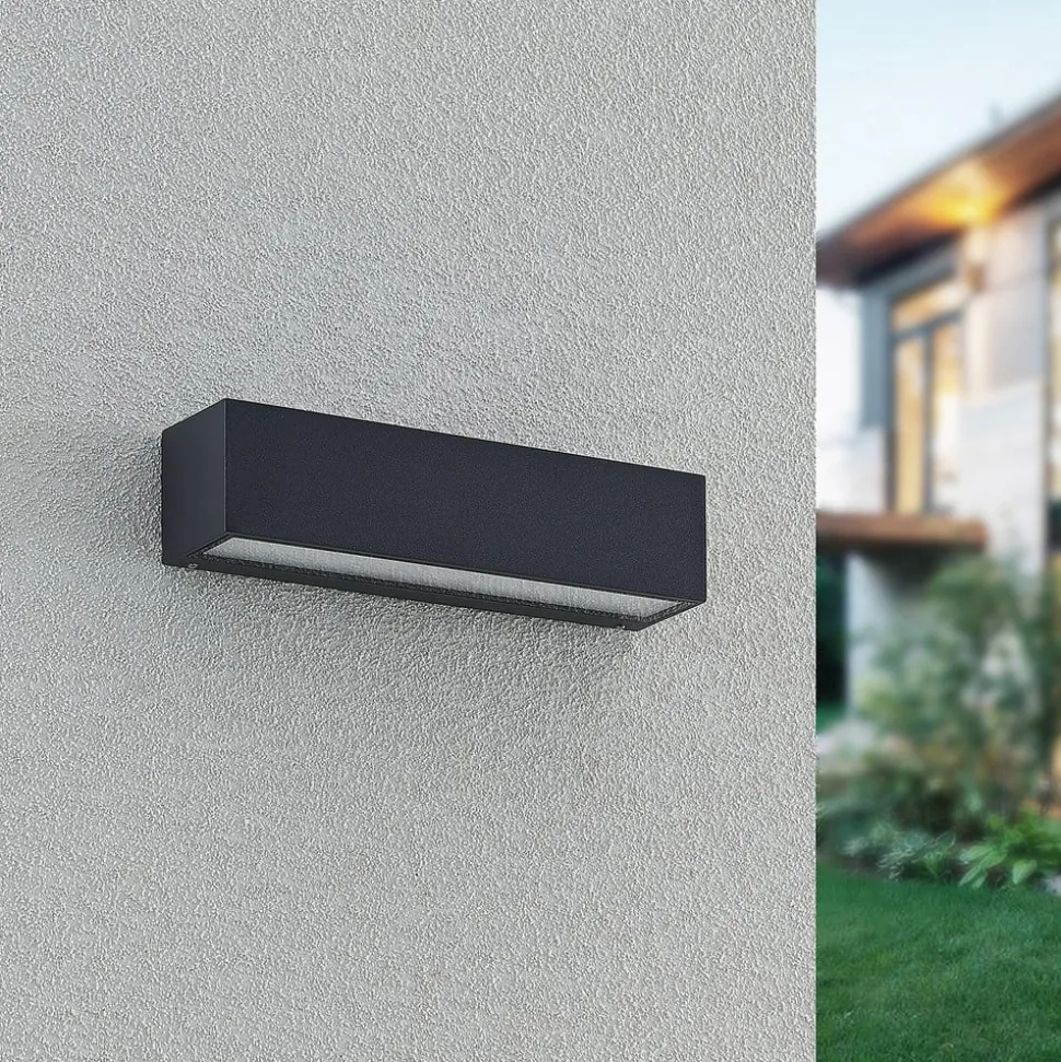Udendørs LED-væglampe Lengo har et lige design og er fremstillet af trykstøbt aluminium. Denne stabile lampe er beklædt med en stilfuld finish i grafitgrå, hvilket giver den et moderne og elegant udseende. Lampen er velegnet til forskellige miljøer og kommer især til sin ret, når den kombineres med andre lamper i denne serie. Takket være lysudstrålingen nedad undgås blænding. Før installationen kan brugeren selv bestemme, om lyset skal være varmhvidt eller universalhvidt – en praktisk funktion til privat og erhvervsmæssig brug.