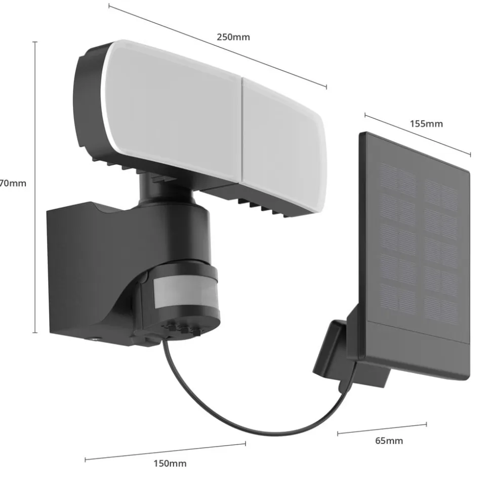 Derudover er der integreret en skumringssensor og en bevægelsessensor. Registreringsvinklen er 110°, og sensoren kan registrere bevægelser i en afstand på op til 12 meter. Lysvarigheden kan indstilles individuelt mellem 10 og 60 sekunder.