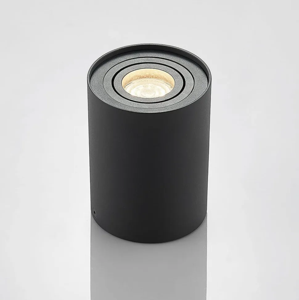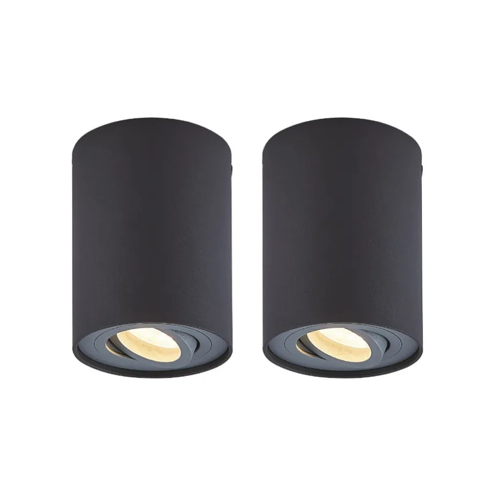 Antracitfarvet GU10-downlight Jolina med drejelig indsats i et praktisk sæt med 2 Jolina-spotlighten har en rund, cylindrisk form og er en loftslampe til både privat brug og kommercielle miljøer. Den indvendige indsats kan drejes op til 30 grader, så lyset kan justeres bedre, og Jolina kan også installeres i en række af lignende armaturer for at opnå en mere omfattende belysning af rummet. Den runde form og den mørke, antracitfarvede finish giver downlighten med GU10-fatning et diskret udseende, så den kan passe diskret ind i en lang række stilarter – leveres i et sæt med 2 stk