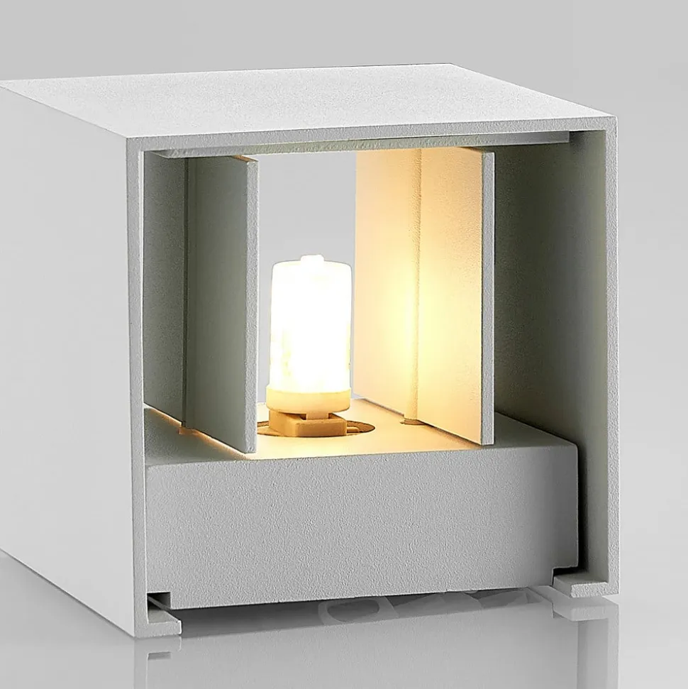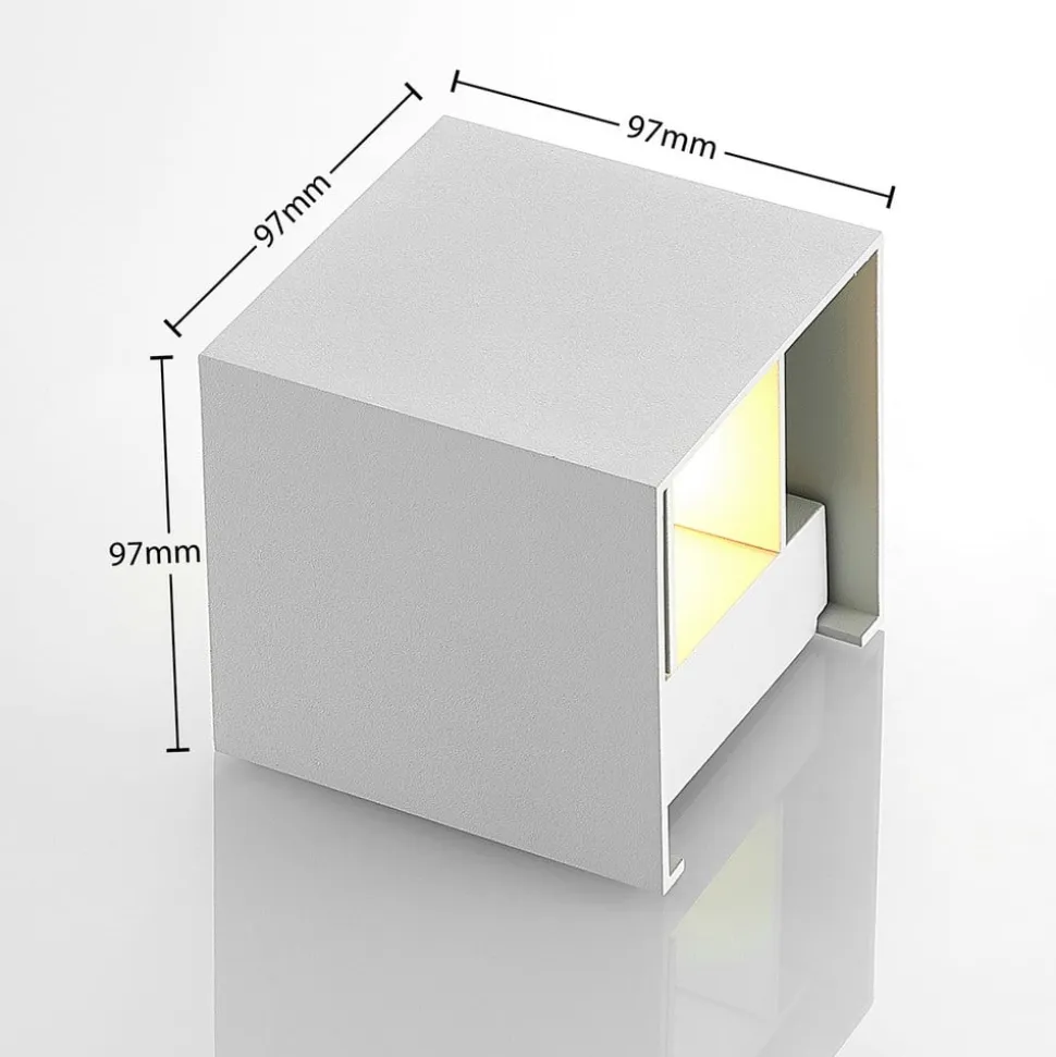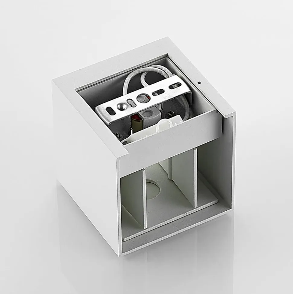 Hvid, kantet Zuzana væglampe med justerbar lysvinkel Zuzana består af en kubeformet aluminiumskrop og har en enkel hvid finish, der er meget tidløs og kan kombineres med mange møbler. Man skal også være særlig opmærksom på lyseffekten, som naturligvis kun kan ses, når armaturet er tændt. Afhængigt af indstillingen sendes lyset så opad og nedad i en lige stor vinkel eller består af en smal lysstråle og en bredere lysstråle, hvorved dette kan realiseres i toppen eller bunden.