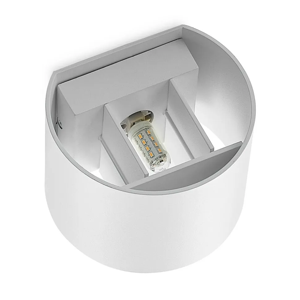 Rund væglampe Zuzana af aluminium i hvid med stik Denne væglampe bringer en hyggelig atmosfære ind i dit hjem og kan nemt betjenes ved hjælp af kontakten på stikket. Denne lampe bringer Arcchios kvalitet ind i dit hjem. Den er fleksibel i brug, kan nemt placeres i ethvert rum og kommer i en hvid farve. Den moderne lampe er designet i en rund form. Den er også udstyret med en G9-fatning. Denne lampe kan bruges til at fuldende dine egne fire vægge.