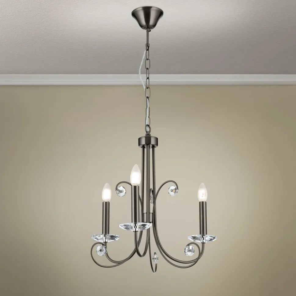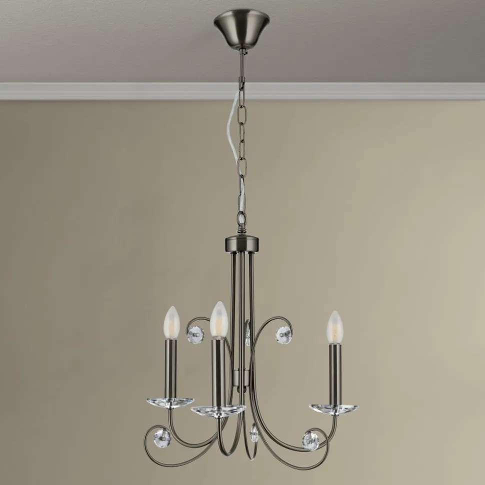 Ariane lysekrone, nikkelfarvet, Ø 50 cm, krystal, 3 lyskilder.