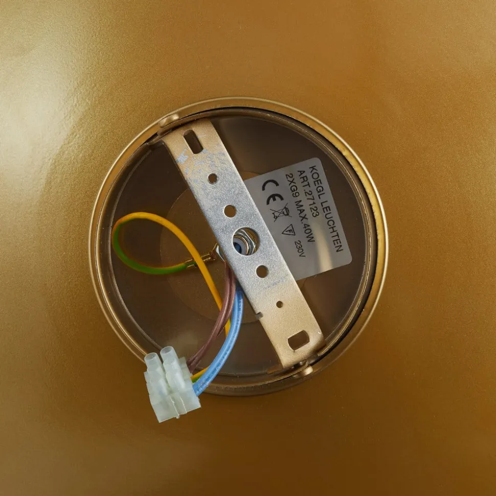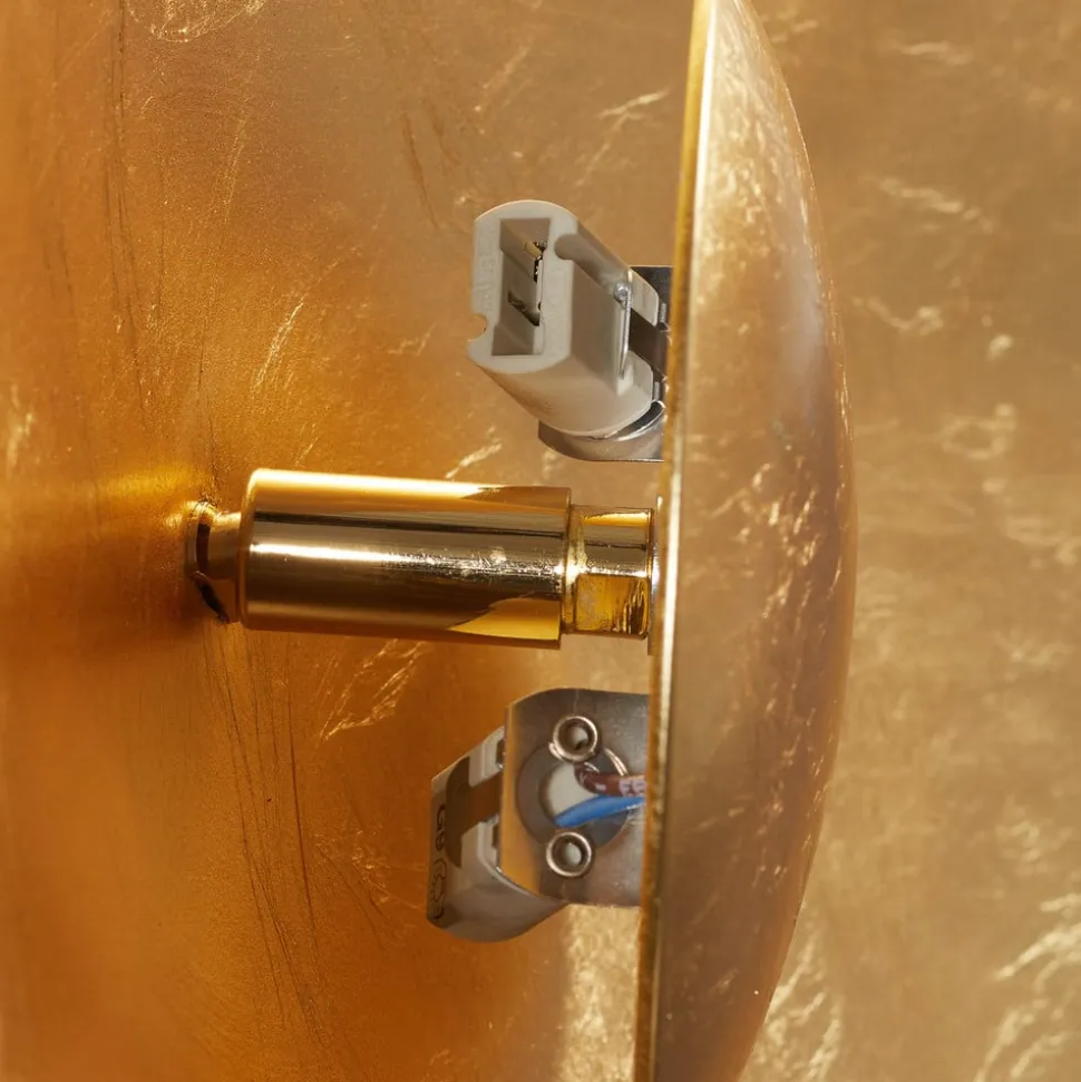 Stilfuld Aura Sol væglampe – raffineret med bladguld Aura Sol væglampen spotlighter fra væggen som en lille sol og gør ethvert rum til et attraktivt blikfang. Den runde metalskive er kunstfærdigt belagt med bladguld for at skabe et varmt skær. Aura Sol – en eksklusiv væglampe til stemningsfuldt lys med en særlig flair. Lampen kan også installeres som loftlampe.