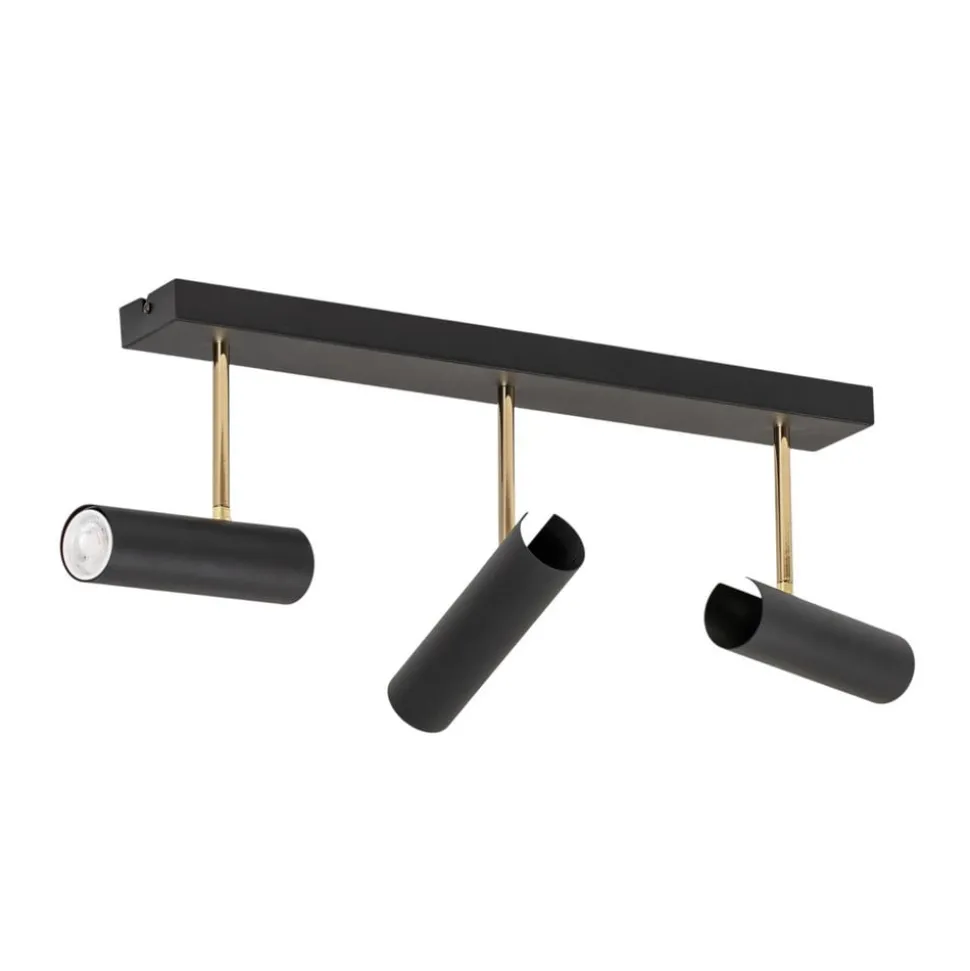Axion loftlampe, 3 lyskilder, sort/guld, lang, stål