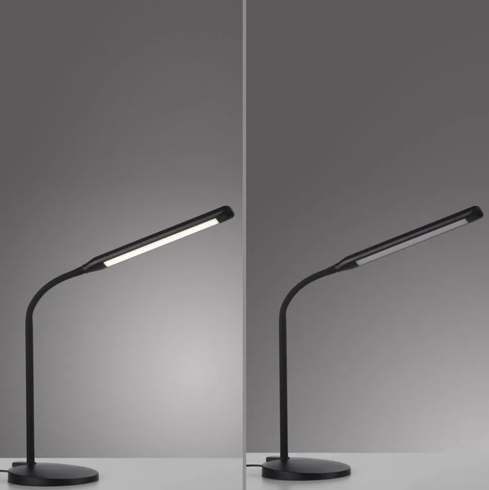 Elly LED-skrivebordslampe med CCT-funktion og touchdæmper Elly LED-skrivebordslampen med langt lampehoved, som kan justeres takket være det fleksible område i stellet, er perfekt til skrivebordet og giver fleksibel belysning takket være CCT-funktionen (valgbar lysfarve) og en integreret touchdæmper. CCT-funktionen gør det muligt at vælge lysfarve fra varmhvid til universalhvid belysning.