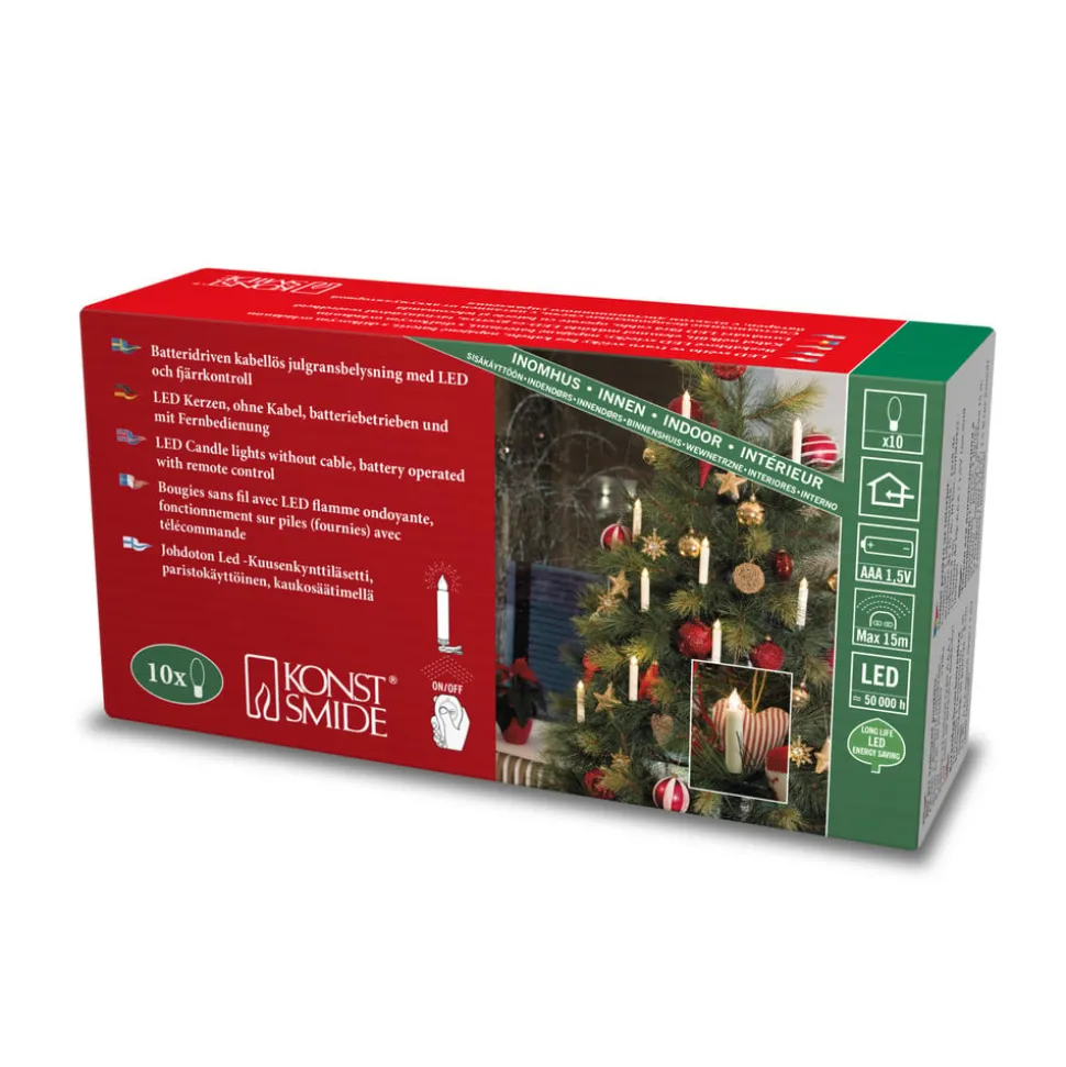 Batteridrevet LED-juletræslys i 10’er sæt – kabelløs, højde 8 cm