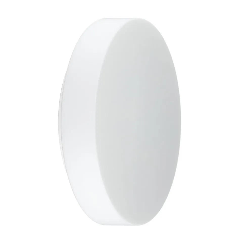 Denne væg- og loftslampe er takket være stænkvandsbeskyttelsen velegnet til brug i badeværelser, spa-områder eller indgange. Metalhuset er mindre end den matte, satinmatte skærm af mundblæst opalglas, så denne udgør hele den synlige del af armaturet. Det høje lysudbytte giver en effektiv grundbelysning, som samtidig er behagelig takket være den bløde lyseffekt. Det enkle, hvide design passer perfekt ind i mange moderne indretninger.