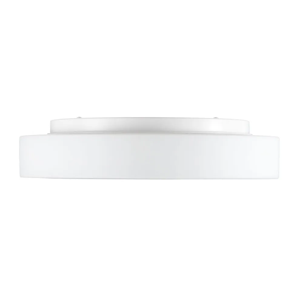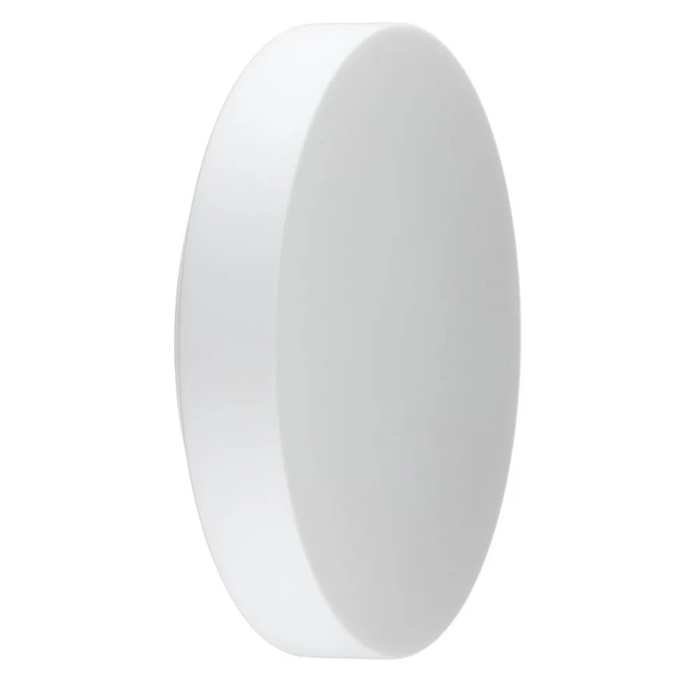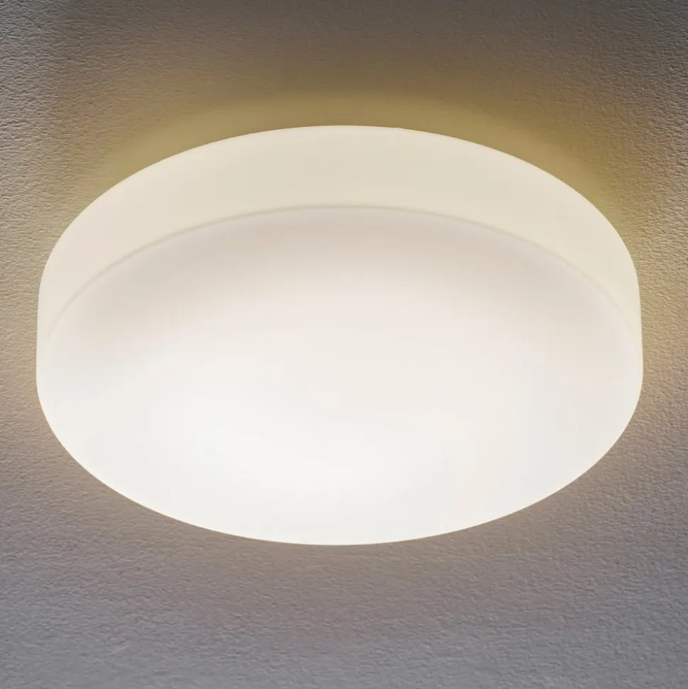 Denne væg- og loftslampe er takket være stænkvandsbeskyttelsen velegnet til brug i badeværelser, spa-områder eller indgange. Metalhuset er mindre end den matte, satinmatte skærm af mundblæst opalglas, så denne udgør hele den synlige del af armaturet. Det høje lysudbytte giver en effektiv grundbelysning, som samtidig er behagelig takket være den bløde lyseffekt. Det enkle, hvide design passer perfekt ind i mange moderne indretninger.
