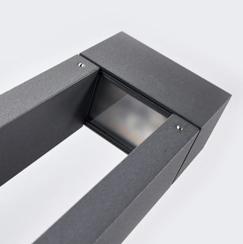 Den nederste halvdel af LED-gadelampen 77265K3 består af et lukket trykstøbt aluminiumslegeme, og den øverste halvdel består af et rammeformet element, ligeledes af trykstøbt aluminium. Heri sidder en diffusor af hvidt sikkerhedsglas, hvorigennem lyset fra de indvendige, varmhvide LED’er trænger ud og skaber en interessant lysgrafik på begge sider af lampen. LED-gadelampen byder på flotte effekter på stier, på terrassen eller ved husets indgangsparti med sin retningsbestemte udstråling af lyset, og især når du monterer flere lamper ad gangen. Lampen er godt beskyttet mod vejrforholdene, takket være kapslingsklasse IP65.