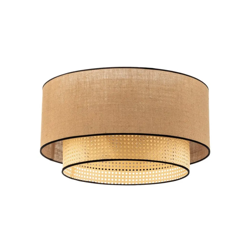 Big Boho sætter markante accenter på dine egne fire vægge og giver intens belysning. Den består af to cylindriske lampeskærme, der er monteret i hinanden. Den mindre skærm har det sædvanlige hulmønster for rattan og skaber et spændende lysspil. Loftslampen præsenterer sig i en beige farve, som er prydet af enkle, sorte accenter. Desuden kan den udstyres med passende pærer og giver mulighed for frit valg af lysfarve og lysintensitet, så belysningen kan tilpasses de personlige behov.