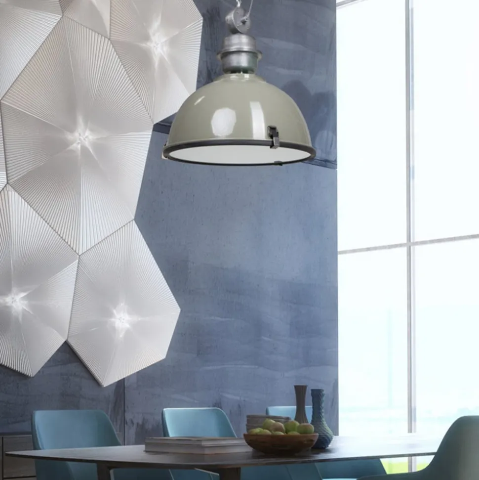 Olivengrøn Bikkel industripendelDen, der ønsker at give sin stue et særligt nostalgisk eller endda industrielt præg og samtidig belyse spisepladsen optimalt, har truffet det helt rigtige valg med Bikkel-pendlen. For med sin olivengrønne metalskærm og sin robuste konstruktion har den alle karakteristika fra en gammel industriel pendel, der allerede har gjort sin tjeneste på en fabrik i flere årtier og derfor ser særlig dekorativ og original ud. Den er udstyret med en E27-fatning, hvor der blandt andet kan sættes en energieffektiv LED-pære i (se tilbehør). Diffusoren, der er monteret under lampeskærmen, giver et behageligt blændfrit lys.