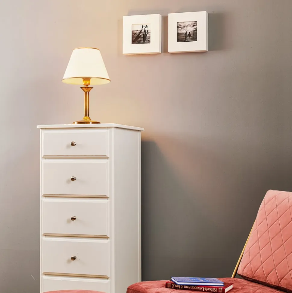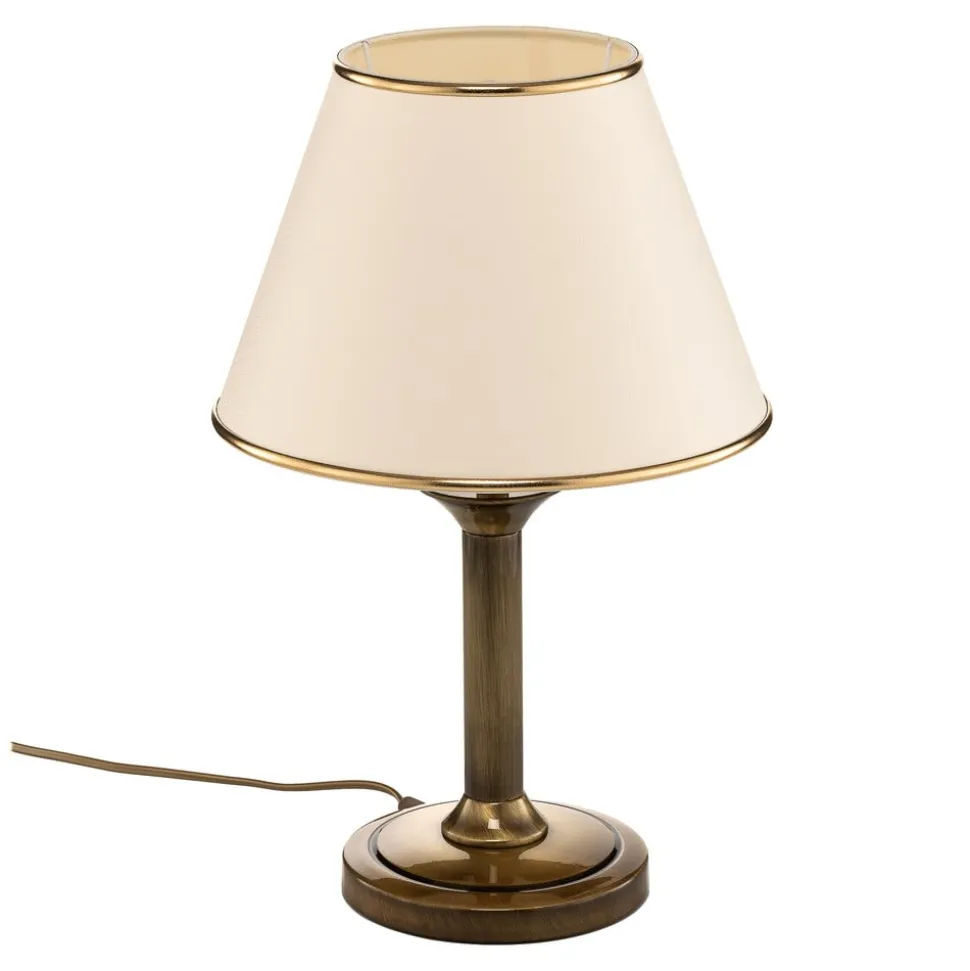 Birmingham bordlampe patineret Ø 27 cm forener antik stil med moderne funktionalitet og bliver dermed et blikfang i enhver stue eller spisestue. Fremstillet af højkvalitets metal og plast, imponerer den med sin elegante kombination af messingpatineret overflade og cremefarvede accenter. Denne lampe bringer ikke kun lys, men også en særlig atmosfære ind i rummet.
