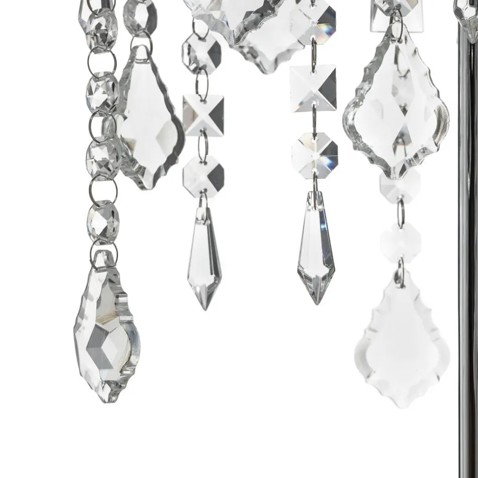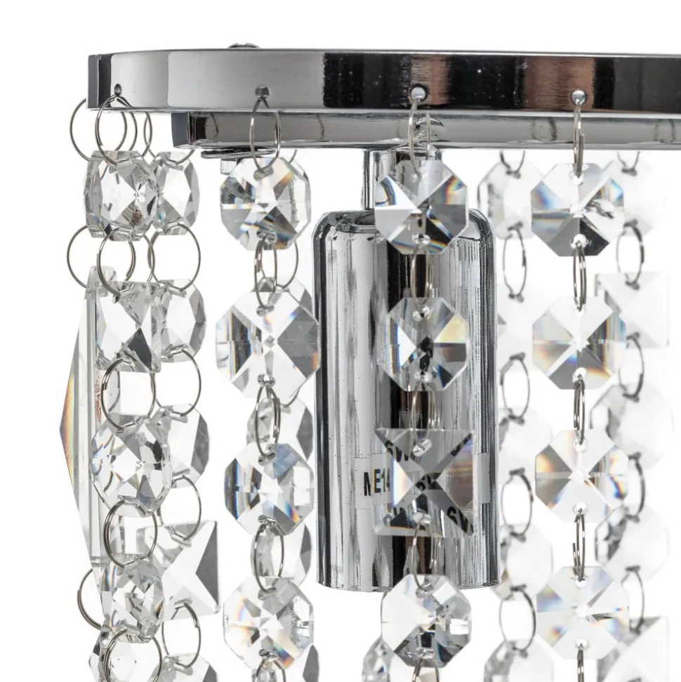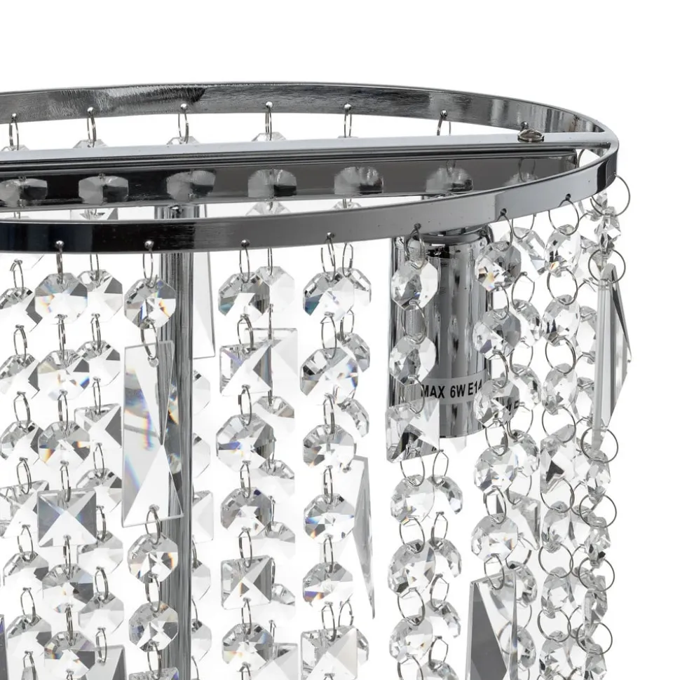 Bordlampen Laila kombinerer moderne design med luksuriøst krystalophæng og sætter stilfulde accenter i ethvert rum. Fremstillet af højkvalitets jern og funklende K9-krystalglas, stråler denne lampe i en elegant kromfinish. Konstruktionen med 2 lyskilder sikrer en jævn og imponerende lysfordeling, der skaber en helt særlig atmosfære i både stuen, soveværelset og spisestuen.