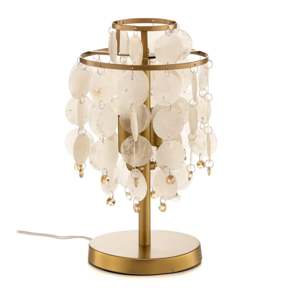 Takket være sin gennemtænkte konstruktion tilbyder bordlampen Ruben ikke kun æstetiske fordele, men også praktiske anvendelsesmuligheder. Den robuste materialekombination sikrer holdbarhed og stabilitet, mens perlemorsskiverne bryder og reflekterer lyset på en fascinerende måde. Denne lampe er det perfekte valg for alle, der værdsætter stilfuld og funktionel belysning.