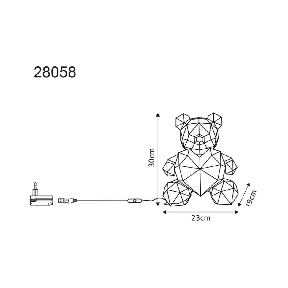 Brondar Bear LED bordlampe til børneværelset: en lysende følgesvend Brondar Bear LED bordlampe til børneværelset kombinerer legende design med funktionel belysning. Den er lavet af robust plast og er en langtidsholdbar og sikker lyskilde til børneværelset. Den integrerede LED-lyskilde giver et energibesparende lys, der stimulerer kreativiteten og samtidig er behageligt for øjnene. Med sin lysfarve skaber lampen en lys og venlig atmosfære, der er ideel til aktiviteter og læring. Brondar Bear bordlampens design passer harmonisk ind i ethvert børneværelsesdesign. Den permanent installerede LED-teknologi garanterer en jævn lysfordeling og minimerer behovet for vedligeholdelse. Denne lampe er ikke kun et dekorativt element, men også et praktisk tilbehør, der forvandler rummet til et inspirerende miljø. Udstyret med USB-kabel inklusive plug-in-strømforsyning.