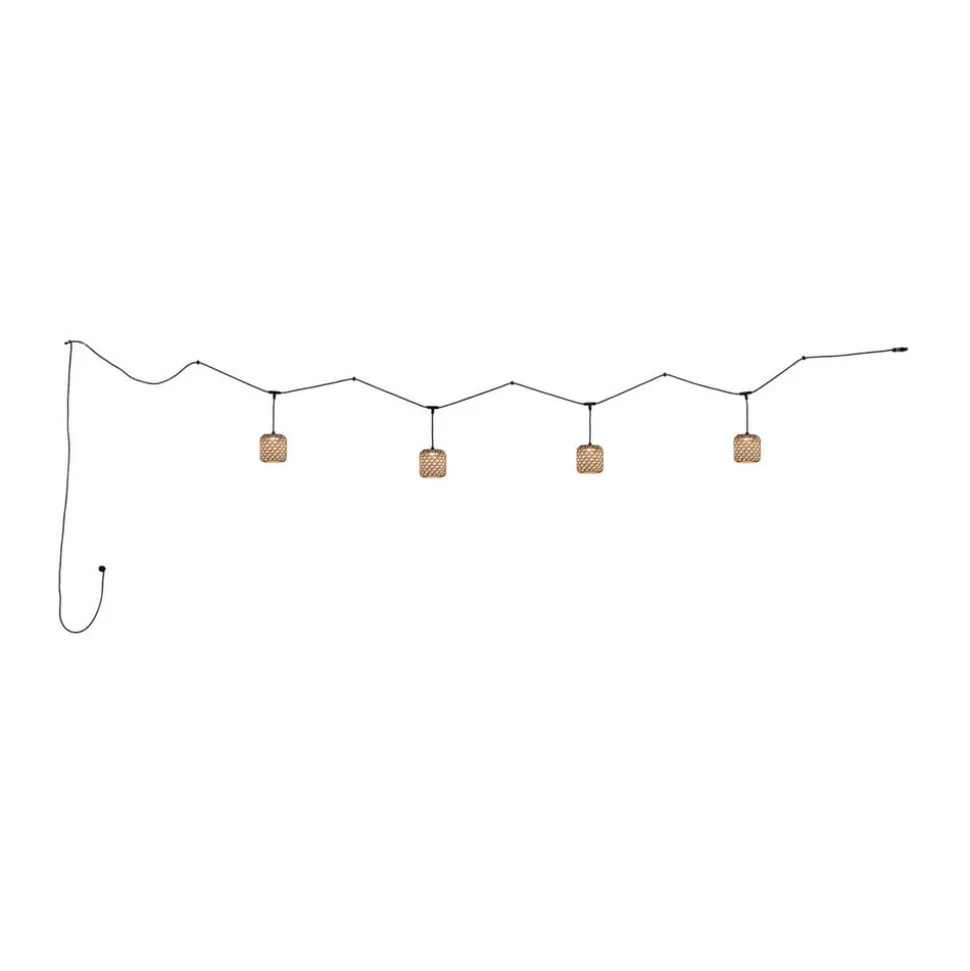 Fire pendler på én ledning: “Lyskæde” Nans til udendørs brugModellen Nans S/16/4L er et meget specielt pendelarmatur, fordi det faktisk er en blanding af en lyskæde og et pendelarmatur, hvor Nans ikke kun har én pendel, men fire. Med denne pendelkæde kan udendørsområdet oplyses på en særlig raffineret og stilfuld måde – uanset om det er på terrassen, på altanen, overdækket eller åbent. Det eneste vigtige er, at der er en stikkontakt i nærheden til at forsyne lamperne med strøm. Nans er en model fra huset Bover i Barcelona. Grundlæggeren Joana Bover har selv designet denne serie af lamper til udendørs brug og bringer dermed stemningen fra sit hjem Barcelona og Middelhavet ind i mange andre menneskers hjem.