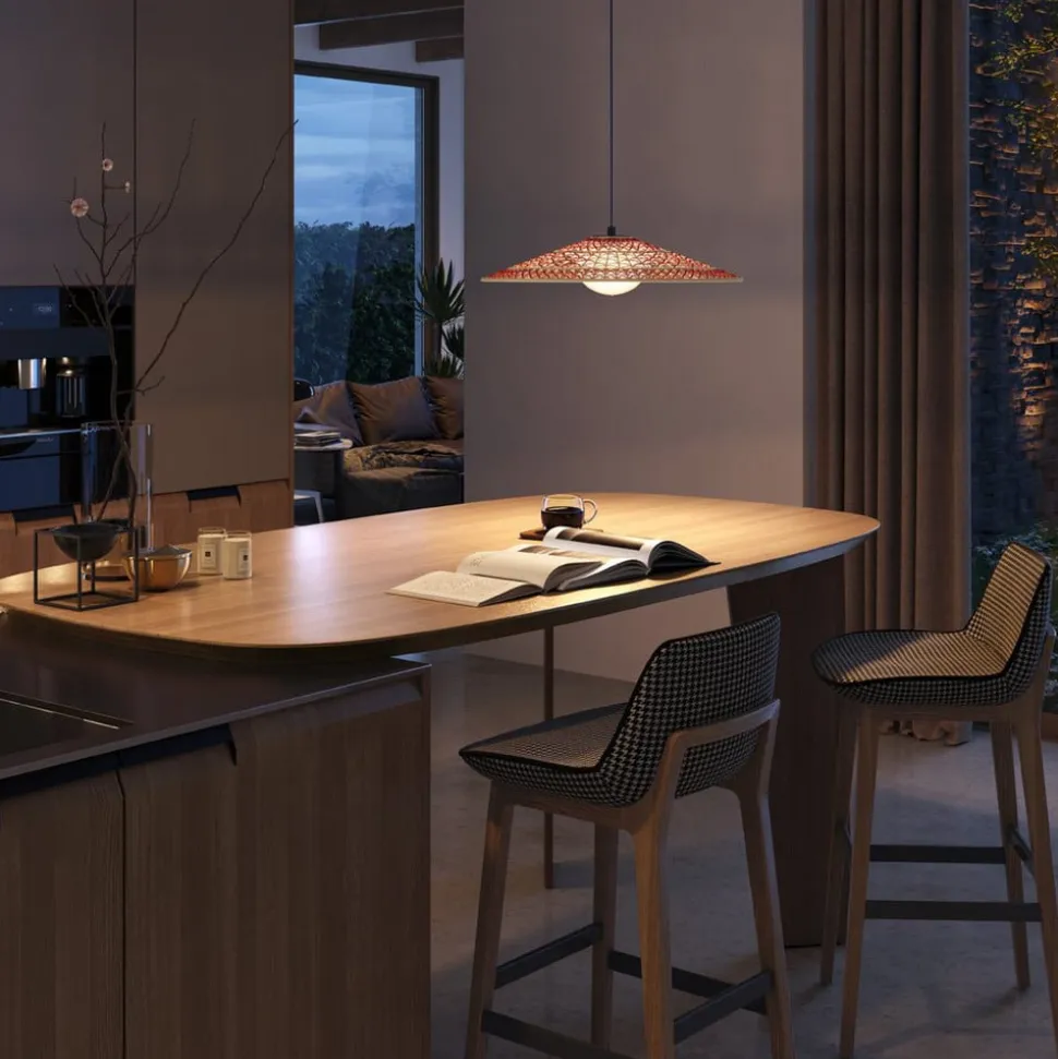 Nans Balis S/55 udendørs hængelampe med håndvævet skærm Nans Balis S/55 udendørs LED-pendellampe imponerer ikke kun med sit attraktive design, men også med sit høje niveau af funktionalitet. Dette armatur, der er fremstillet i Europa, kombinerer stil med holdbarhed og har en integreret LED-lyskilde, der giver energibesparende belysning. Med en kapslingsgrad på IP54 er lampen ideel til brug på terrassen, da den er beskyttet mod vandsprøjt og støv. Nans Balis S/55 LED-hængelampen er et HighLight til ethvert udendørs område og imponerer med sin designkvalitet og effektive belysning – eksternt dæmpbar
