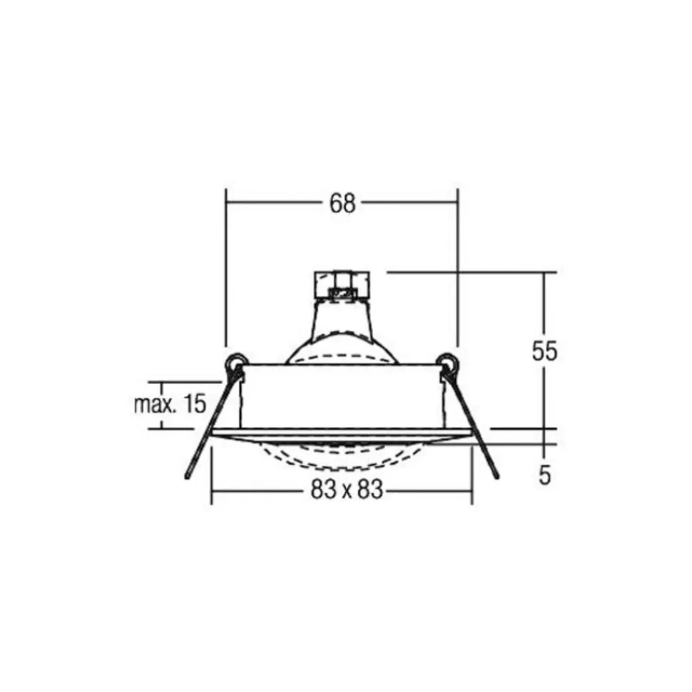 Firkantet indbygningsspot Breena-S, drejelig 25° Det firkantede indbygningsspot Breena-S er fremstillet af trykstøbt aluminium og trykstøbt zink i en kompakt form til hurtig og værktøjsfri installation i loftet. Spottet er udstyret med en GU5,3-sokkel og kan monteres med en lyskilde på op til 50 W (tilbehør), det kan drejes 25° for at justere belysningen. Breena-S-indbygningsspottet kan bruges i mange private og kommercielle områder – der kræves et kontroludstyr til drift – egnet til LED retrofit-lamper med GU5,3-sokkel – inkl. sokkel med 30 cm forsyningskabel – kan ikke bruges i monteringsbokse – ingen afdækning med varmeisolerende materiale – uden afdækning – uden snapring