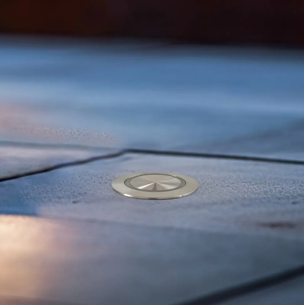 LED-gulvindbygningsarmaturet Hybride Mini fås her i en version med filigran, ringformet lysudstråling. Den opalhvide, ringformede skærm er forsænket i det runde hus af V4A rustfrit stål. Denne er også fremstillet af specielt, modstandsdygtigt krom-nikkelstål af rustfrit kvalitet samt aluminium.