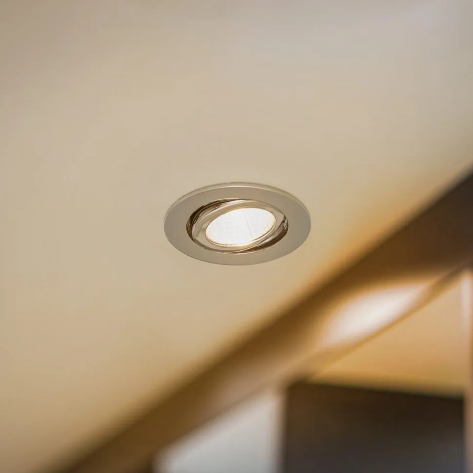 Svingbar, rund LED-indbygningsspot IP65 Den runde LED-indbygningsspot i aluminium er designet til værktøjsfri fjedermontering i lofter – både indendørs og udendørs. Armaturhovedet, som er udstyret med en reflektor, kan drejes hele vejen rundt inden for et område på 30°. Dermed er indbygningsarmaturet en alsidig downlight til moderne offentlige og private applikationer – inklusive ikke-dæmpbar LED-konverter – udstrålingsvinkel: 38° – drejeområde: 30° hele vejen rundt – lofttykkelse: maks. 2,4 cm