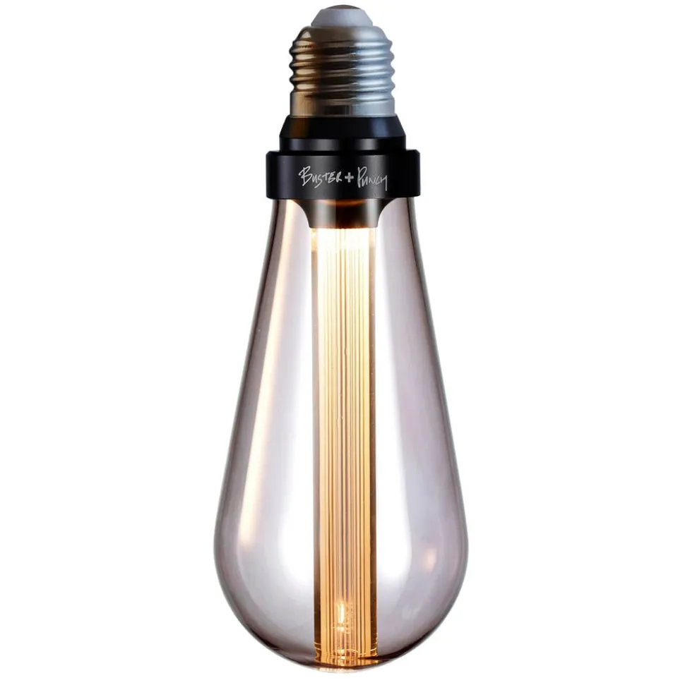 Dæmpbar LED-filamentpære E27 med 2 W, 2.500 K, dråbeform, røggrå transparent kolbe
