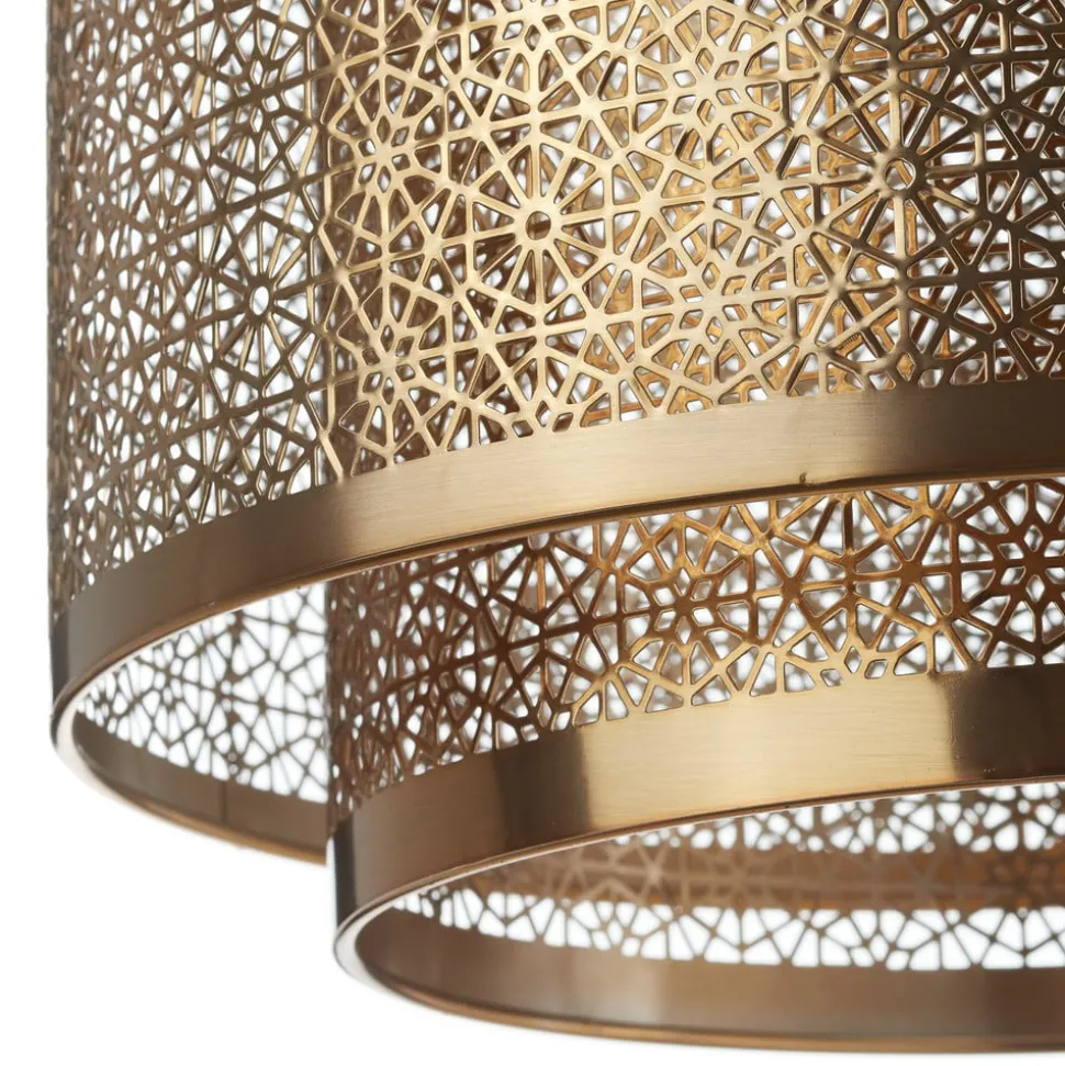 Hermine er en orientalsk hængelampe, som har en skærm med to cylindre i forskellig størrelse, der er sat ind i hinanden. Begge lampeskærme er af metal med messing-finish og er udformet med et stjernelignende hulmønster, så lyset trænger igennem. Hermine skaber en meget speciel belysning, der giver en behagelig atmosfære i ethvert rum. Lampens ophæng består af metal-legemer med en finish af messing. Den indbyggede E27-fatning kan bestykkes individuelt.