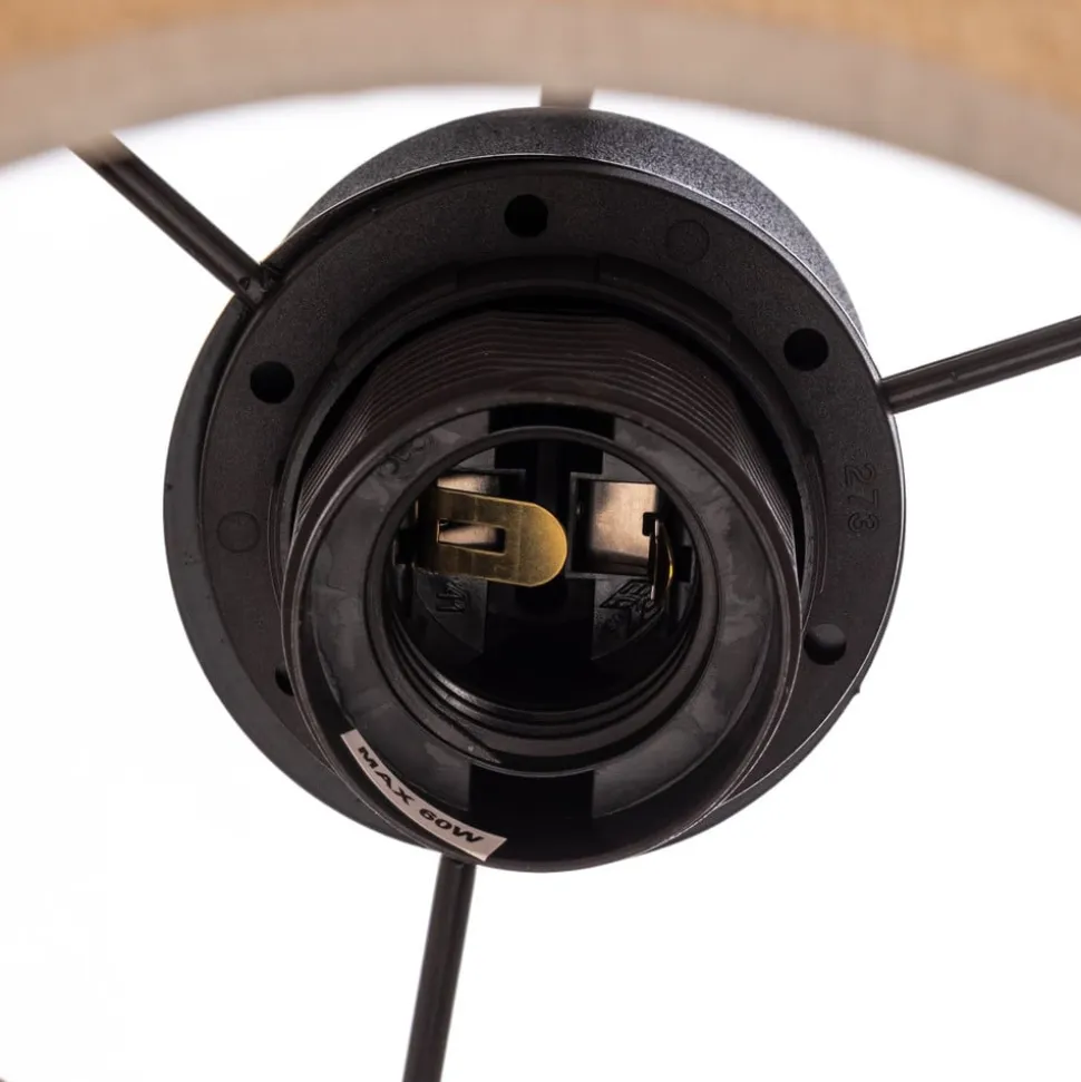 Calisto væglampe med cylindrisk skærm lavet af naturlig brun jute Calisto væglampen har en cylindrisk skærm, der består af to kugler med forskellige diametre. Deres jute-tekstil giver væglampen en hyggelig og naturlig karakter. Der er en afbryder på det sorte vægbeslag til betjening.