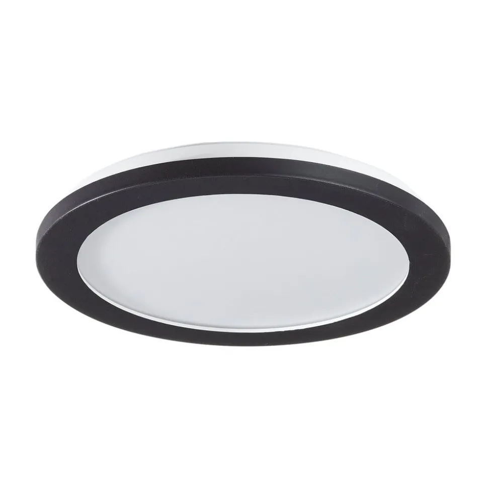 Camillus LED-loftslampe med kontaktdæmper Camillus LED-loftslampen med sort ramme kan også monteres på væggen. Lyset kan dæmpes til tre forskellige lysstyrker ved hjælp af den normale lyskontakt. Takket være IP44-beskyttelsesgraden er Camillus LED-loftslampen også velegnet til badeværelset. Det varme, hvide lys oplyser rummet jævnt.