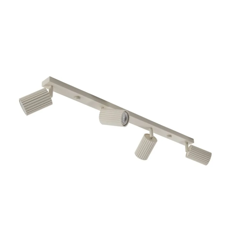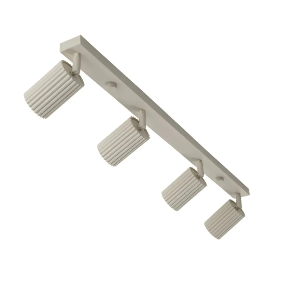 Karbon loftspot: elegance og fleksibilitet til opholdsrum Det 4 lyskilder store Karbon loftspot er med sin moderne stil og elegante beige farve en berigelse for enhver stue, spisestue eller køkken. Denne spotlight er fremstillet i Europa og står for kvalitet og lokalt håndværk. Aluminiumsmaterialet af høj kvalitet sikrer holdbarhed og et attraktivt udseende – Eksternt dæmpbar