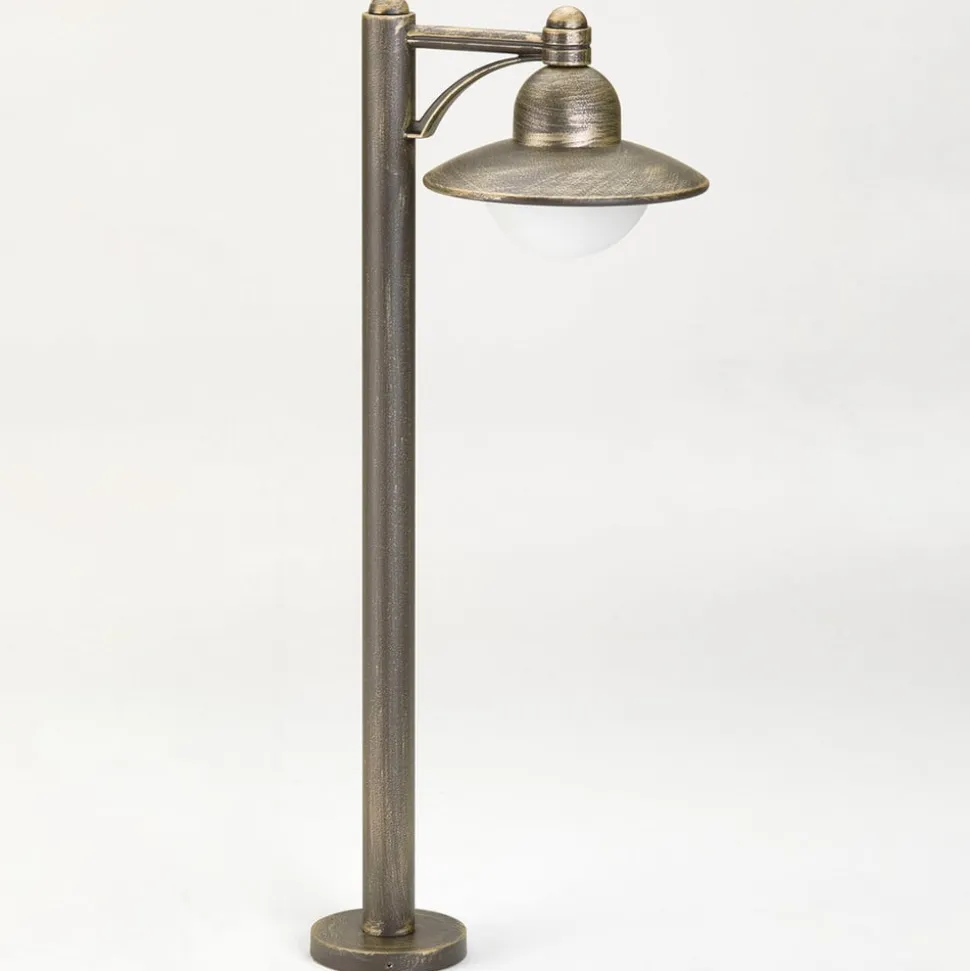 Dekorativt designet Carla-stibelysning Carla-stibelysningen er smukt designet i trykstøbt aluminium og har en finish i brun messing. Finishen og den smukke form gør den til den ideelle lyskilde til landhusområder, hvor den ikke kun bruges til belysning, men også til dekorative formål. Ud over glødelamper kan man også bruge sparepærer eller moderne LED-lamper i stibelysningens E27-sokkel. Ved at bruge LED-lamper kan belysningen af udendørsområdet realiseres på en omkostningseffektiv, energibesparende måde, og LED’erne har også en meget lang levetid.