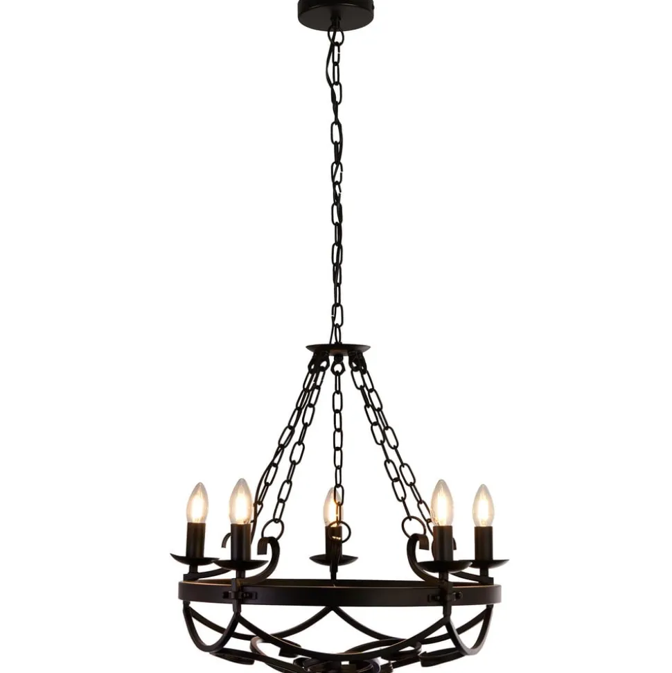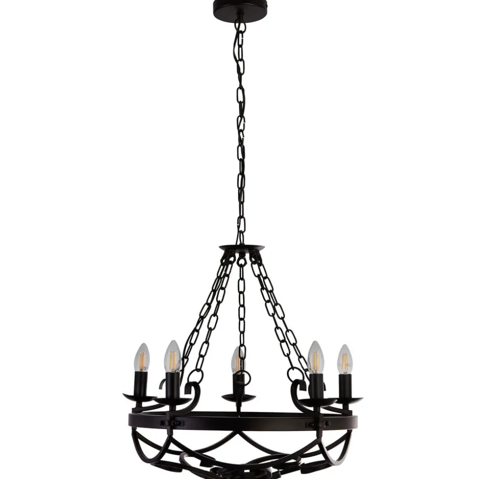 Cartwheel III lysekrone, 5 lyskilder, Ø 54 cm, sort, metal