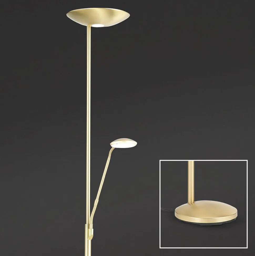 Cobra LED-uplight inklusive LED-læselampe: begge lyskilder kan justeres trinløst Cobra LED-uplight, der er designet i elegante messingfarver, er et absolut visuelt HighLight i sig selv og er funktionelt i topform. Ikke kun belysningen af projektøren, men også den integrerede LED-læselampe kan justeres efter behov. Lysintensiteten kan justeres trinløst ved hjælp af dæmper på rammen, som også kan bruges til at indstille den ønskede lysfarve mellem varmhvid (2.200 K) og dagslys (6.000 K). Læselampens arm har en fleksibel svanehals, der kan bruges til at justere lampehovedet.