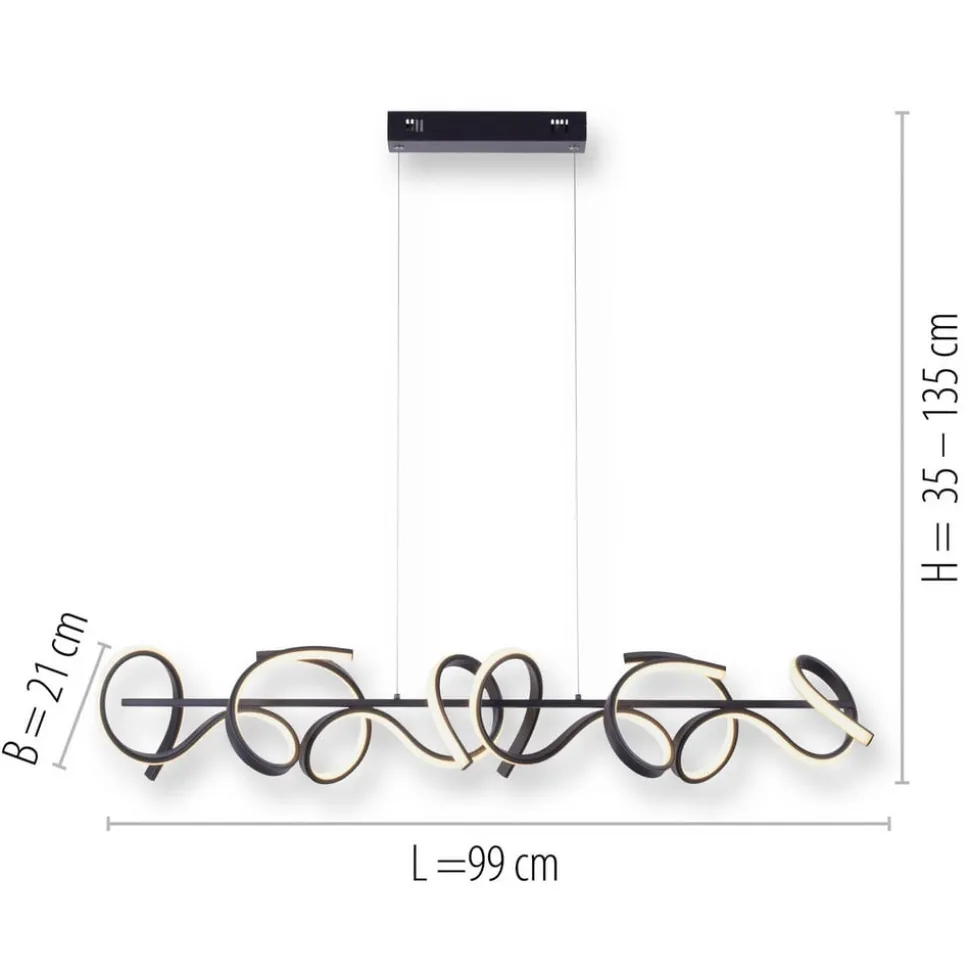 Curls LED-hængelampe, sort, metal, 99 cm lang, dæmpbar