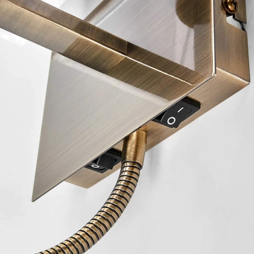 Med 6519 væglampen i tidløst design er der sørget for behageligt lys i soveværelset. Det firkantede design i patineret messing kommer især til sin ret i mange stilarter, for her er metalstellet på harmonisk vis blevet kombineret med en hvid stofskærm. Med den ekstra integrerede bøjelige LED-arm giver væglampen målrettet lys, for eksempel til hyggelæsning i sengen.