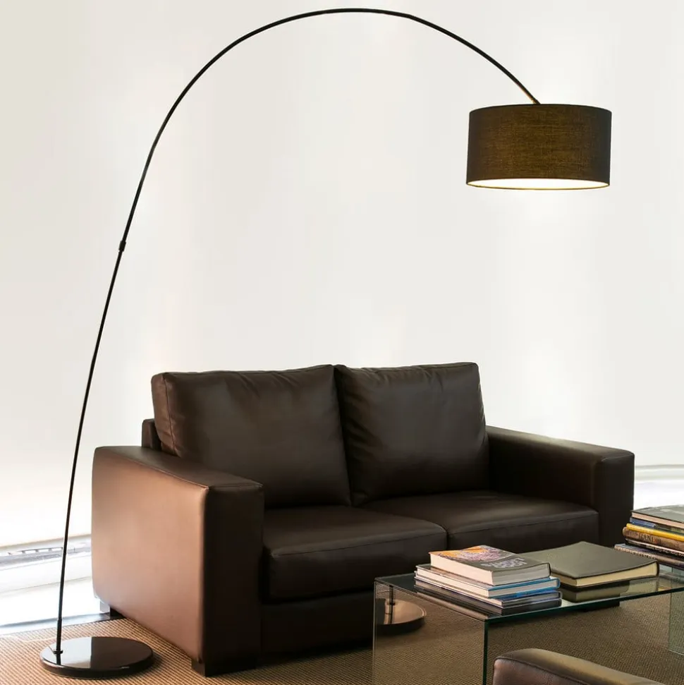 Tiltalende PAPUA buet armatur Dette armatur imponerer med sin tidløse og alligevel moderne buede form. Den brede projektion gør det til en alsidig belysningsmulighed til stuen og sætter også særlige accenter, når det er slukket.