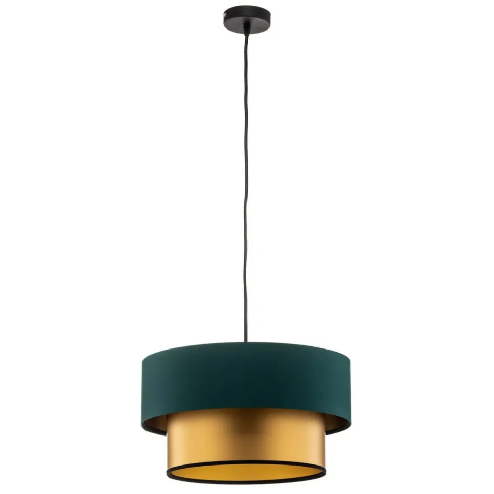 Hængelampen Dorina imponerer med sit unikke design med dobbelt skærm i en harmonisk kombination af grøn og guld. Denne lampe sætter stilfulde accenter og giver ethvert rum en særlig atmosfære. Den dobbelte skærm sikrer en jævn lysfordeling og skaber en behagelig atmosfære, der er velegnet til både afslappede aftener og produktive timer.
