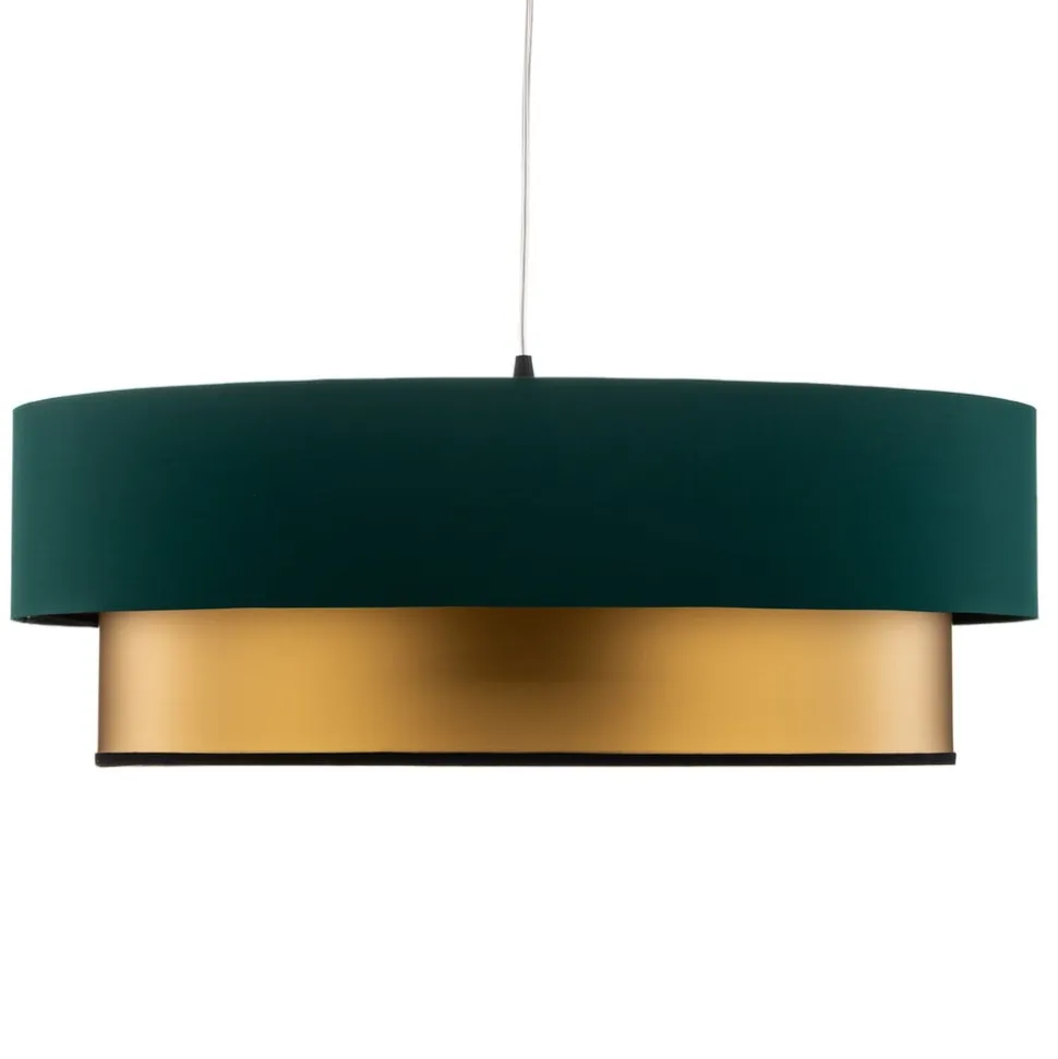 Hængelampen Dorina imponerer med sit unikke design med dobbelt skærm i en harmonisk kombination af grøn og guld. Denne lampe sætter stilfulde accenter og giver ethvert rum en særlig atmosfære. Den dobbelte skærm sikrer en jævn lysfordeling og skaber en behagelig atmosfære, der er velegnet til både afslappede aftener og produktive timer.