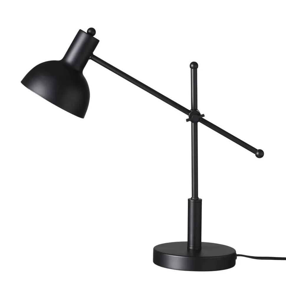 London-bordlampen i sort metal giver en god belysning af det ønskede område, uanset om det er på hjemmekontoret ved skrivebordet eller i stuen til læsning eller håndarbejde. Lampen, der er fremstillet udelukkende af metal og har en mat sort lakfinish, er udstyret med en todelt arm med et led, hvor skærmen kan justeres efter behov.