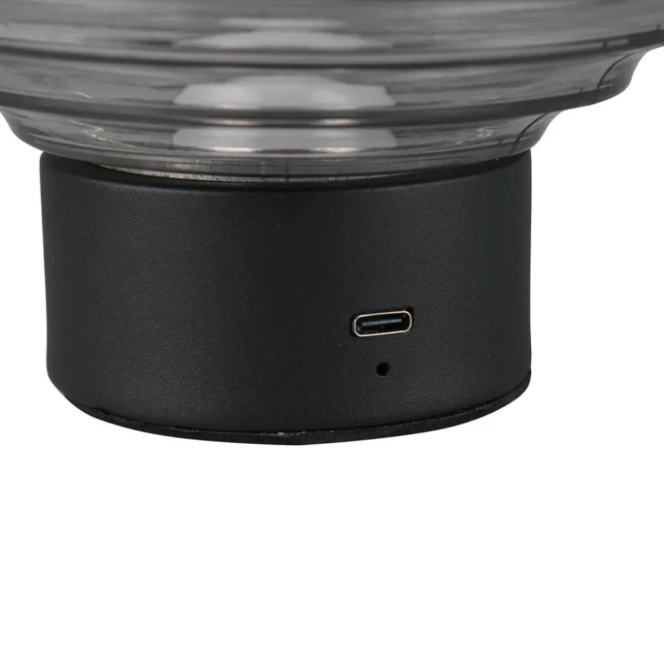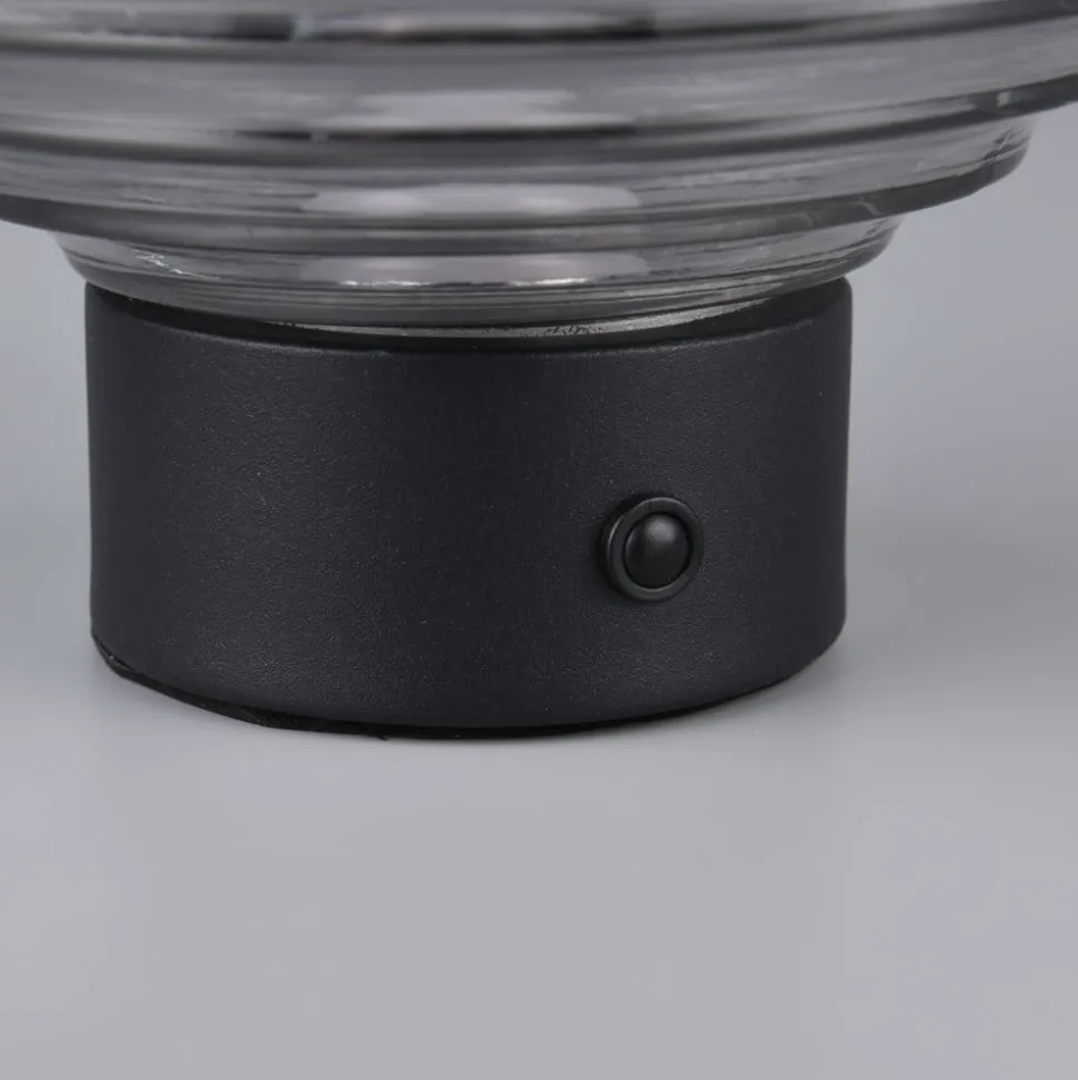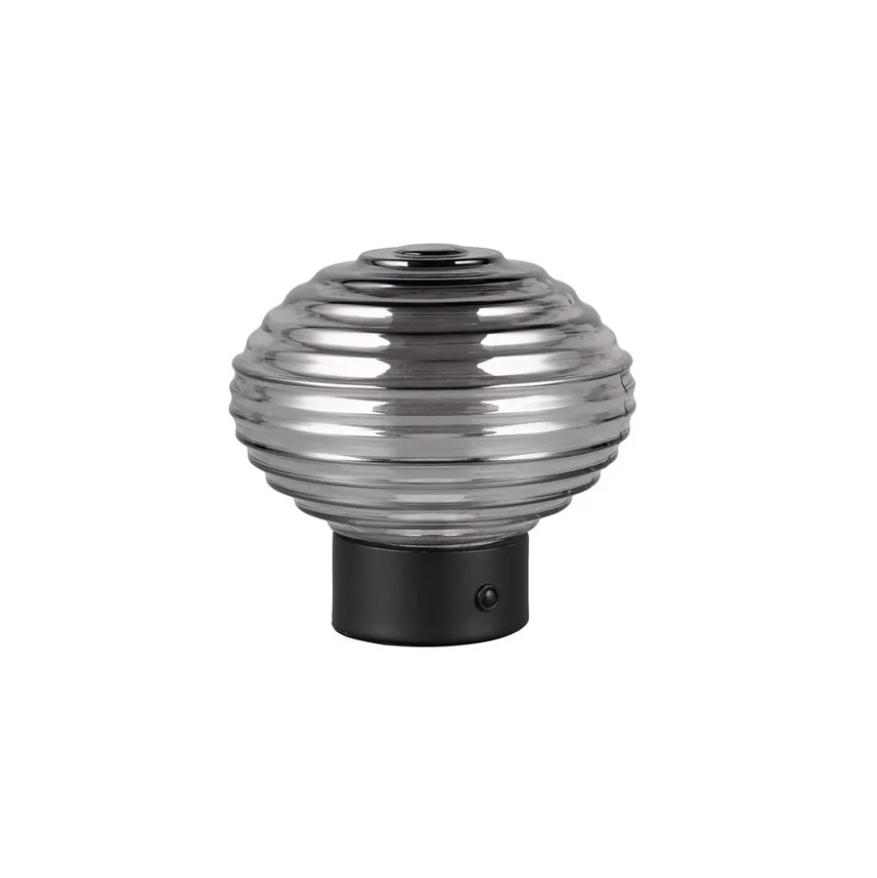 Earl LED genopladelig bordlampe, sort/røget, højde 14,5 cm, glas