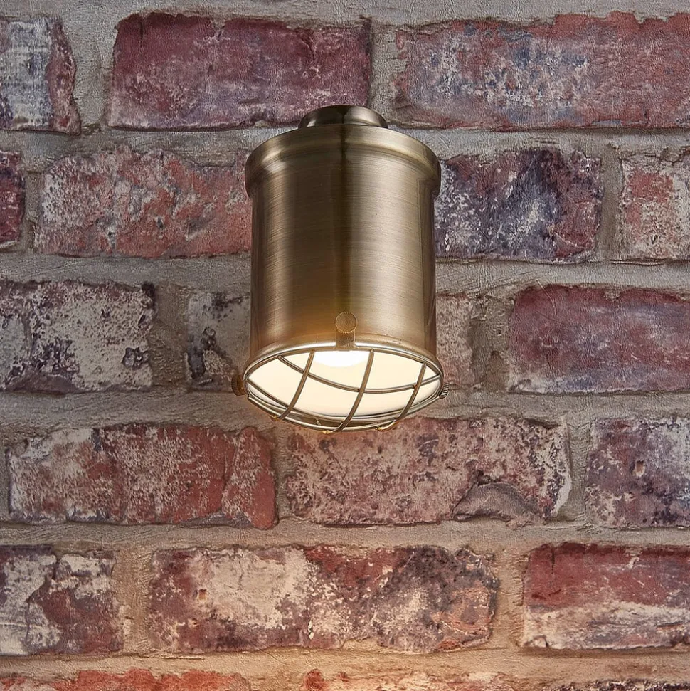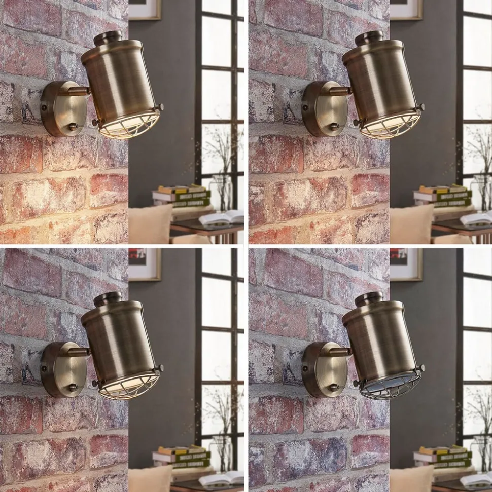 Antik udseende vægspot Ebbi med vippekontaktDenne LED-vægspot har en antik messingfarvet overflade, der giver den en antik effekt. Over skærmen sidder et gitterformet dæksel, og bag det gemmer sig en E14-stikdåse. På vægbeslaget er der en vippekontakt, der gør det særligt nemt at tænde og slukke.