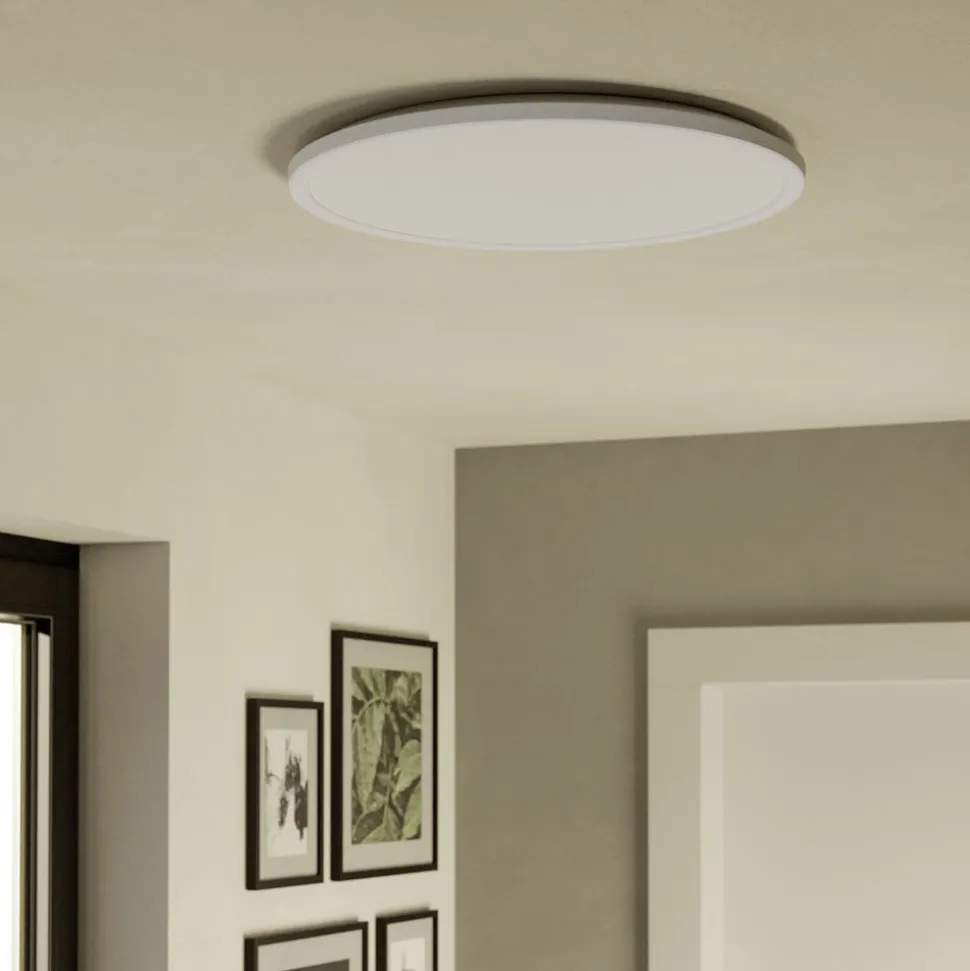 Rovito-Z LED-loftslampe, fladt design og smart styring via app og stemme Med farvet og hvidt lys tilbyder den flade Rovito-Z LED-loftslampe en række forskellige belysningsmuligheder, afhængigt af humør og tidspunkt på dagen. De integrerede, dæmpbare LED’er lyser klart og jævnt og giver en solid omgivelsesbelysning. Men Rovito-Z kan ikke kun monteres i loftet, men også som en simpel væglampe. Lyset styres smart via en passende app, en kompatibel stemmeassistent eller også klassisk med en passende fjernbetjening. Funktioner / kompatibilitet: – kan styres med den gratis AwoX HomeControl-app – kompatibel med smart home-systemer fra andre producenter, der bruger ZigBee 3.0 – direkte forbindelse med Amazon Echo og Google Home mulig – øget rækkevidde takket være ekstra Bluetooth mesh – kompatibel med alle elementer i EGLO connect-c Bluetooth-serien – kan styres med en passende fjernbetjening, selv uden internetadgang (se tilbehør)